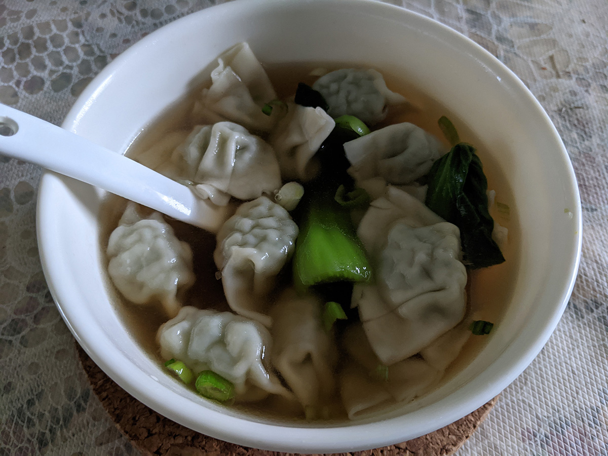 when we got back to belmont my mother made me a bowl of wonton soup for lunch. there were also some figs but they weren't completely ripe yet.