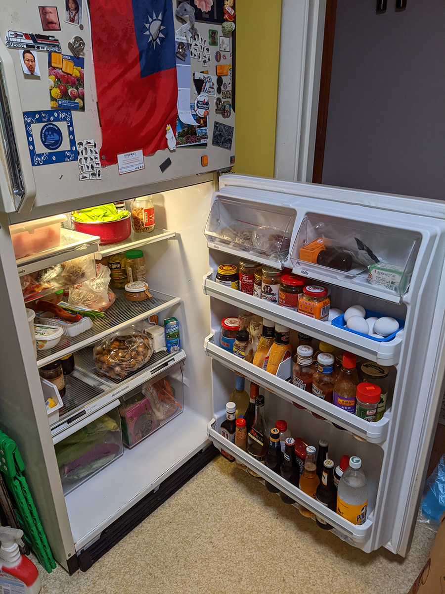 when it was all over, the fridge felt like a semi-new refrigerator: old on the outside, but new on the inside. with everything better organized, it'll be easier to find things instead of the usual rummaging around.