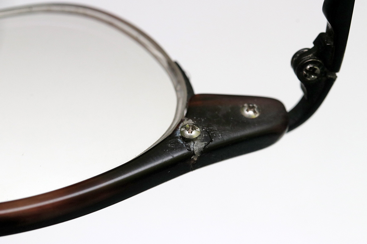while fixing my glasses this morning i accidentally snapped the left end piece. it was totally stupid, i should've known better, i was trying to tighten a screw and applying too much pressure. it wasn't completely broken off, so i squeezed some super glue gel into the crack. a while later it broke again, this time i squeezed glue into the screw hole and screwed it back into place. it'll be a matter of time before it breaks again. these were old frames anyway, close to a decade old, but the lenses are new as of last november. i wonder if i can move the lenses onto a new pair of frames? the other thing i can do is completely break off the left arm and glue it back using special plastic epoxy glue.