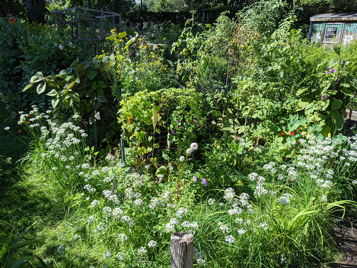 i was waiting for a good time to call my mother and ask if she needed anything from the supermarkets (like if we were throwing a barbecue) but the cafe kept being busy and people kept showing up so i never got a chance. friday is when i traditionally go into boston, but there was nothing i really needed, either chinatown or haymarket, as i still have plenty of fruit in the house. so after one last cream cheese bagel for lunch, i decided to visit the community garden, with the hopes that afterwards my mother would be free and i could ask if she needed me to do a super market supply run.