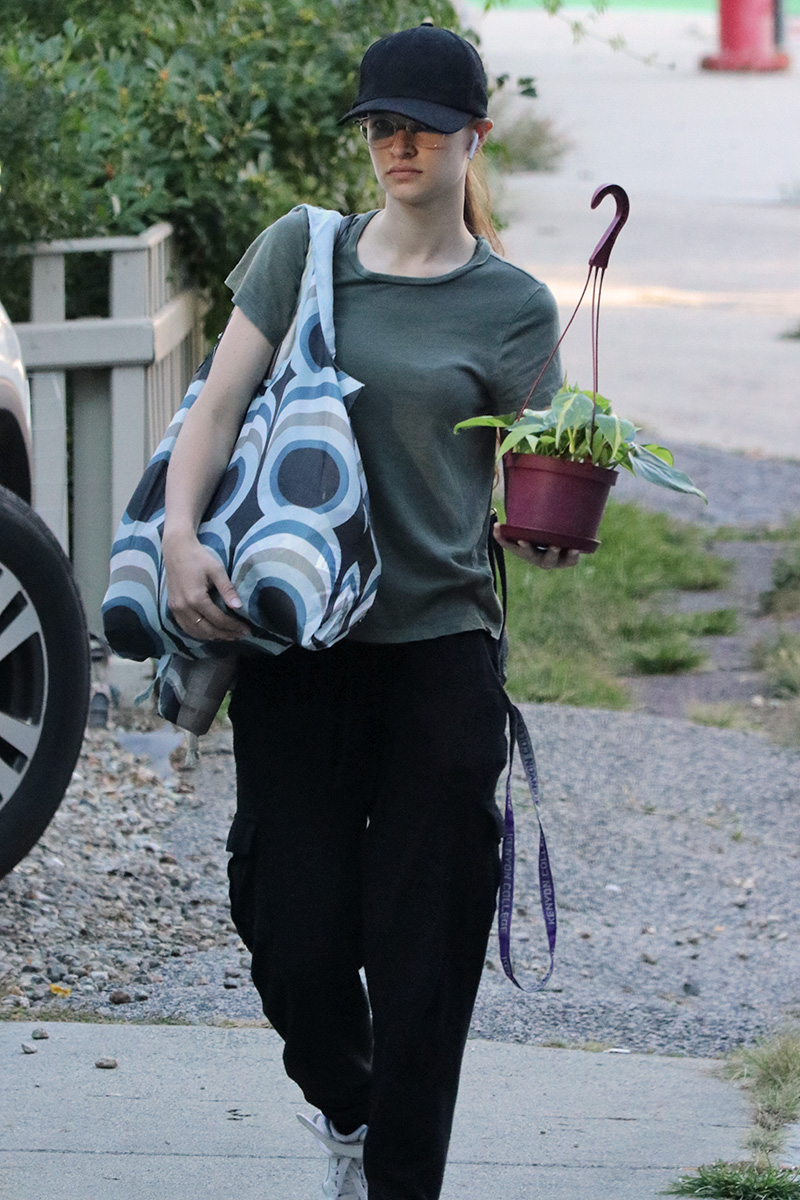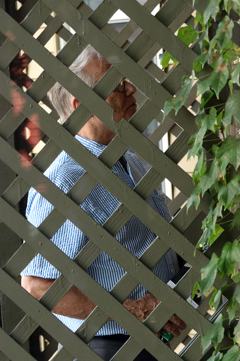 anne was standing in front of the garden and i was chatting with her until she told me she was actually on the phone with her doctor. after picking off all the ripe cherry tomatoes i watered my garden. afterwards anne came back to chat.
