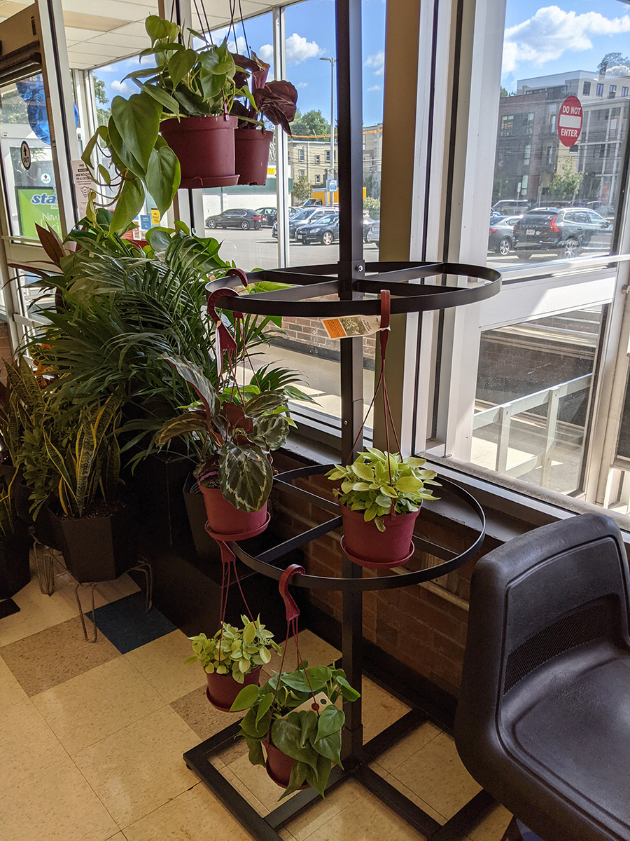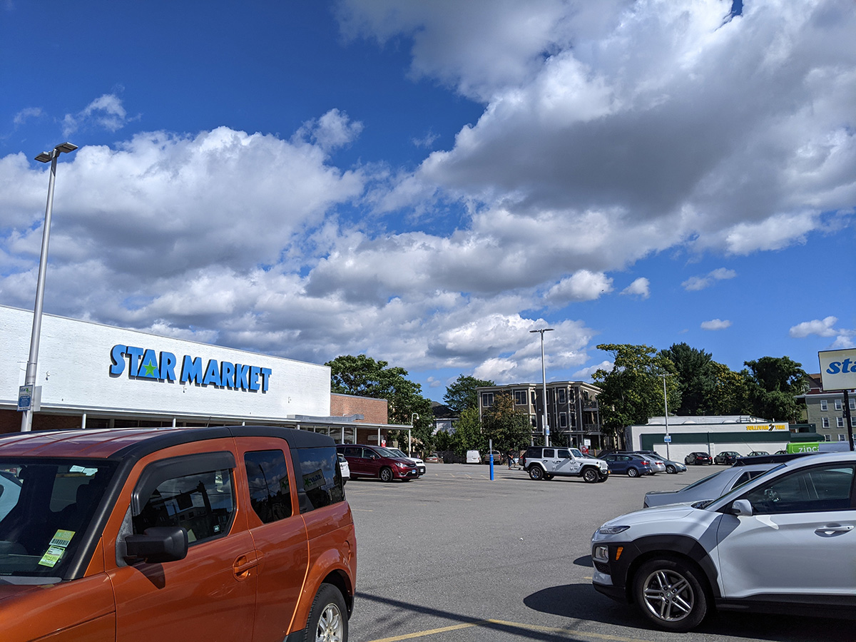 my mother was still busy so i decided to get a few things anyway, regardless if we have a barbecue or not this weekend. there was a sale on corn at star market for 17¢ per ear (a maximum of a dozen). i also picked up some black plums for 97¢/lbs. there was a new display of hanging houseplants for sale, many of which were already sold seeing how little plants were left. in the sky i could see and hear a helicopter. it seemed like it was hovering in east cambridge, so when i got home i looked it up. judging from it's flight path, it looks to be a state police helicopter in training.