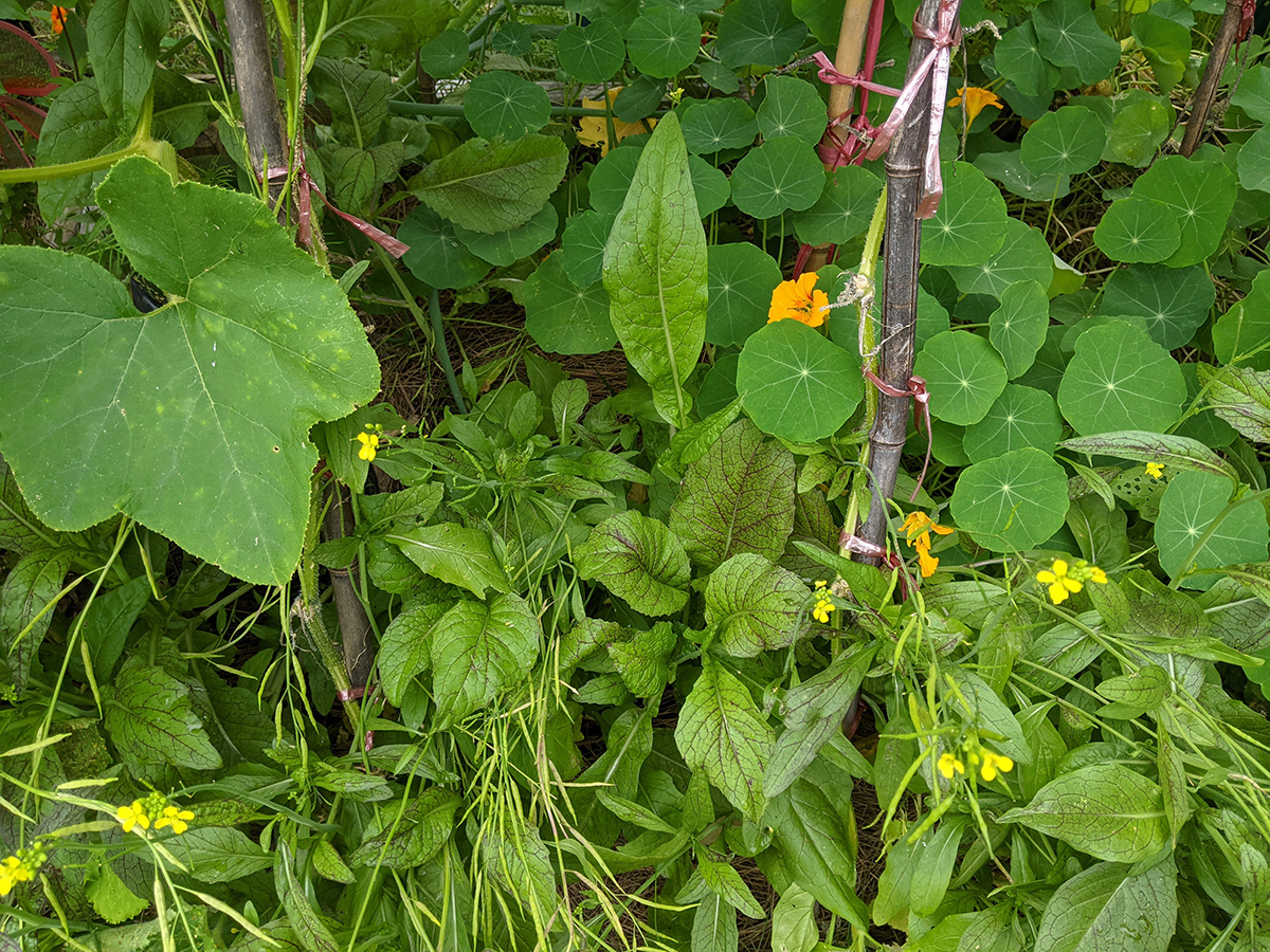 i sprayed neem oil on any powdery mildew infections i saw on leaves. it seems to affect some of the western bed squash leaves, the zucchinis in RB3, and that one peony in the southeastern perennial bed (though the other peonies seem to be mildew free).