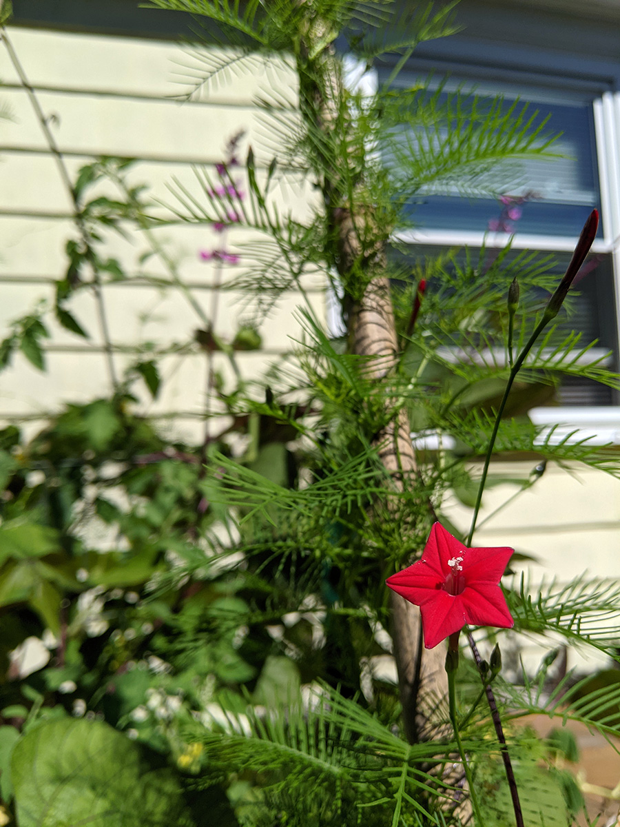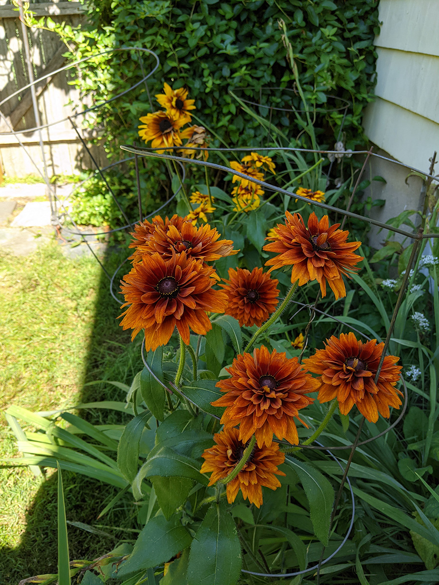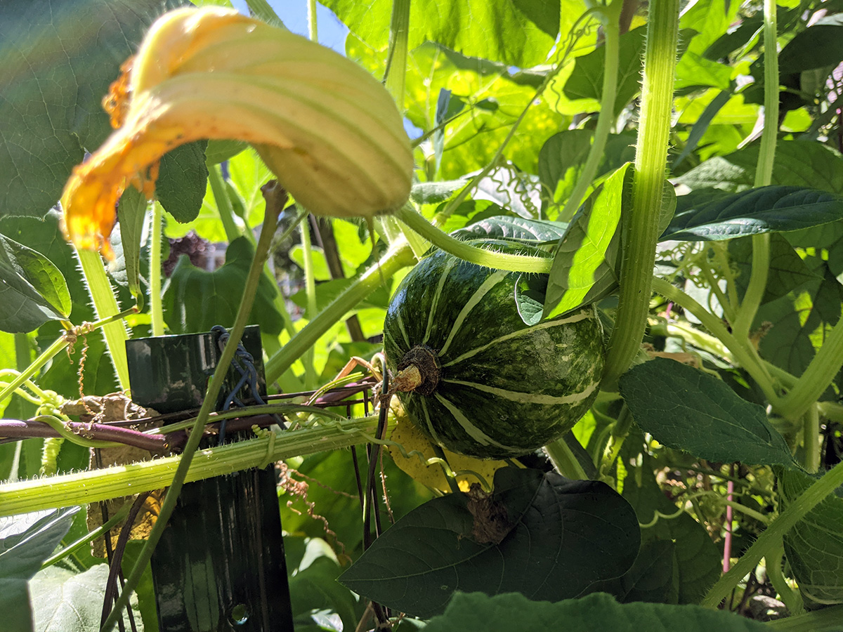 i made it to belmont in just 15 minutes. i grabbed the corn from the fridge, but couldn't resist going outside and taking a quick peek of the garden. in the mornings the jasmine flowers are still open and fragrant. the cherokee sun rudbeckias are starting to straighten out after i supported them with tomato cages. the southwestern goldenrods are starting to bloom. is the newly emerged buttercup squash in RB1 growing any bigger? if yes, then it's a race against time to see if it can mature before the growing season ends for squashes sometime in october.