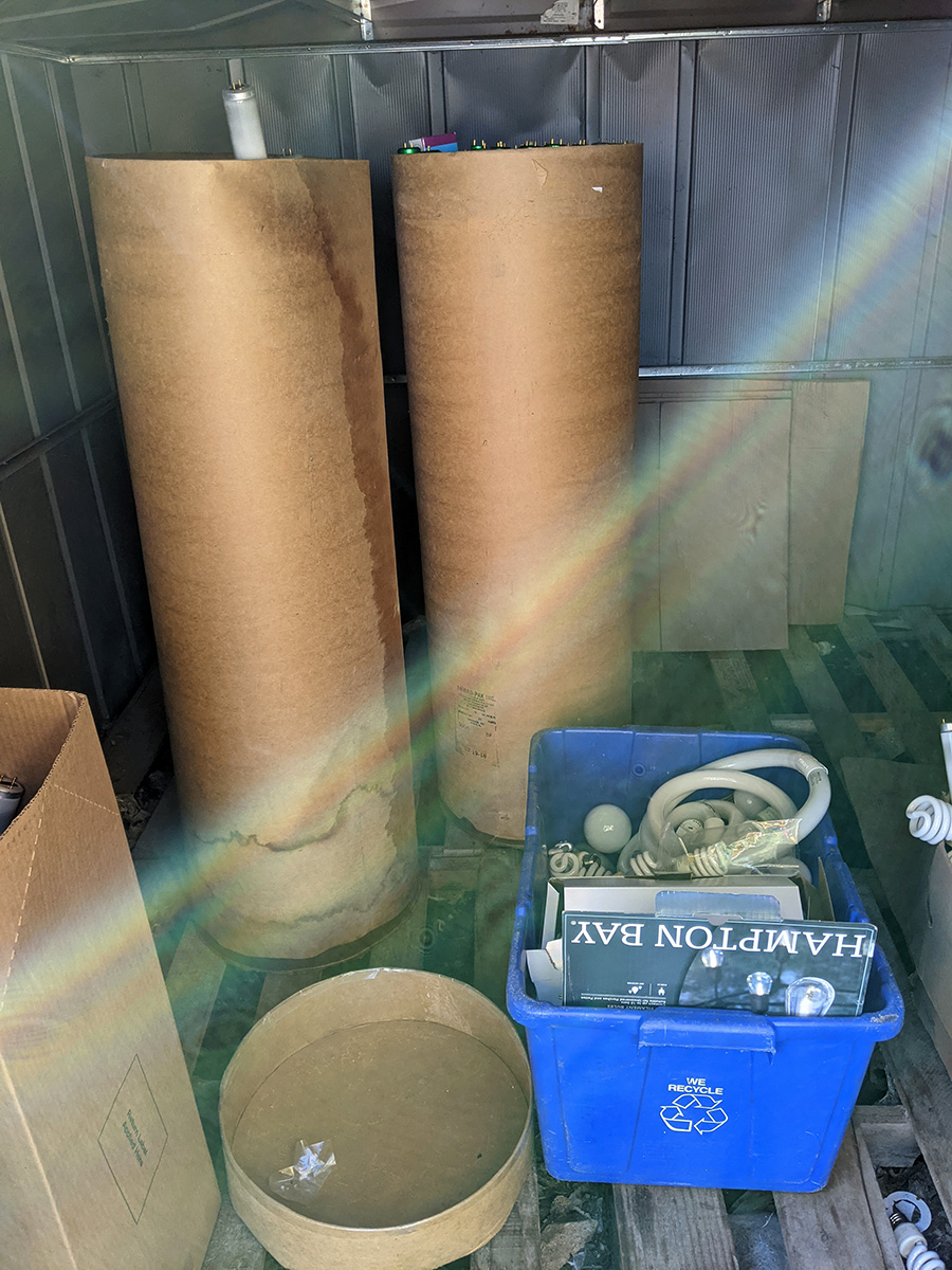 around 4pm i went out one last time, this time to the cambridge recycling center, to drop off an old mac laptop battery and a pair of used UV fluorescent tubes. there was already a line of cars waiting outside to get in. the public works guys were helpful but clueless, as the person who's usually in charge of the recycling center didn't show up for work today. i brought a face mask but accidentally ripped one of the straps so i couldn't wear it anymore. i ended up making my own piles then left.