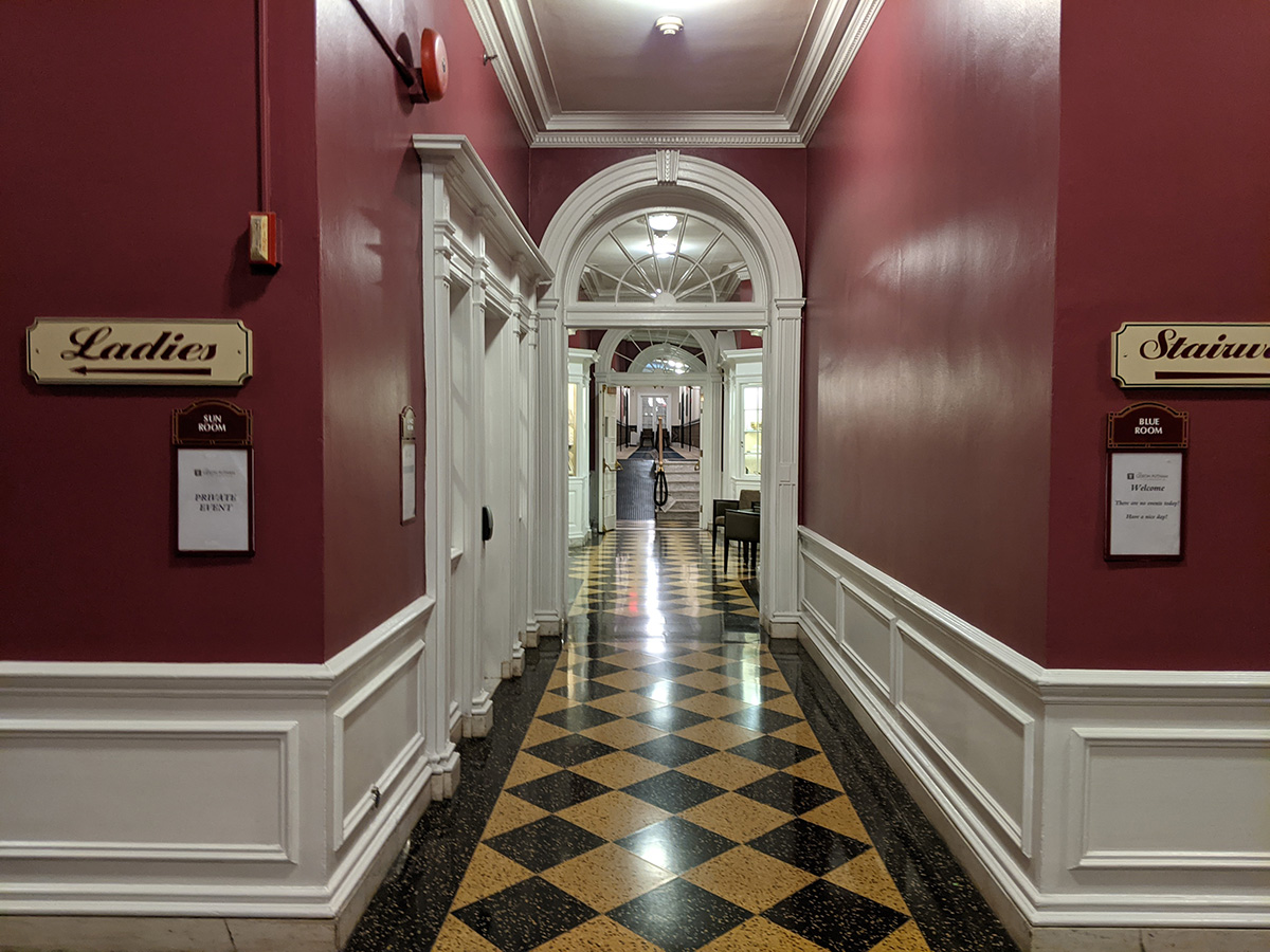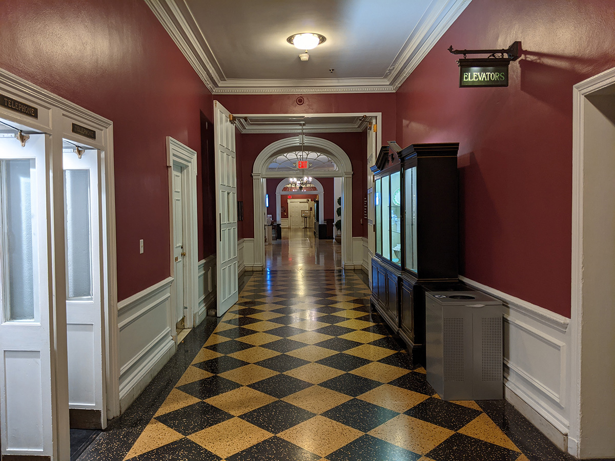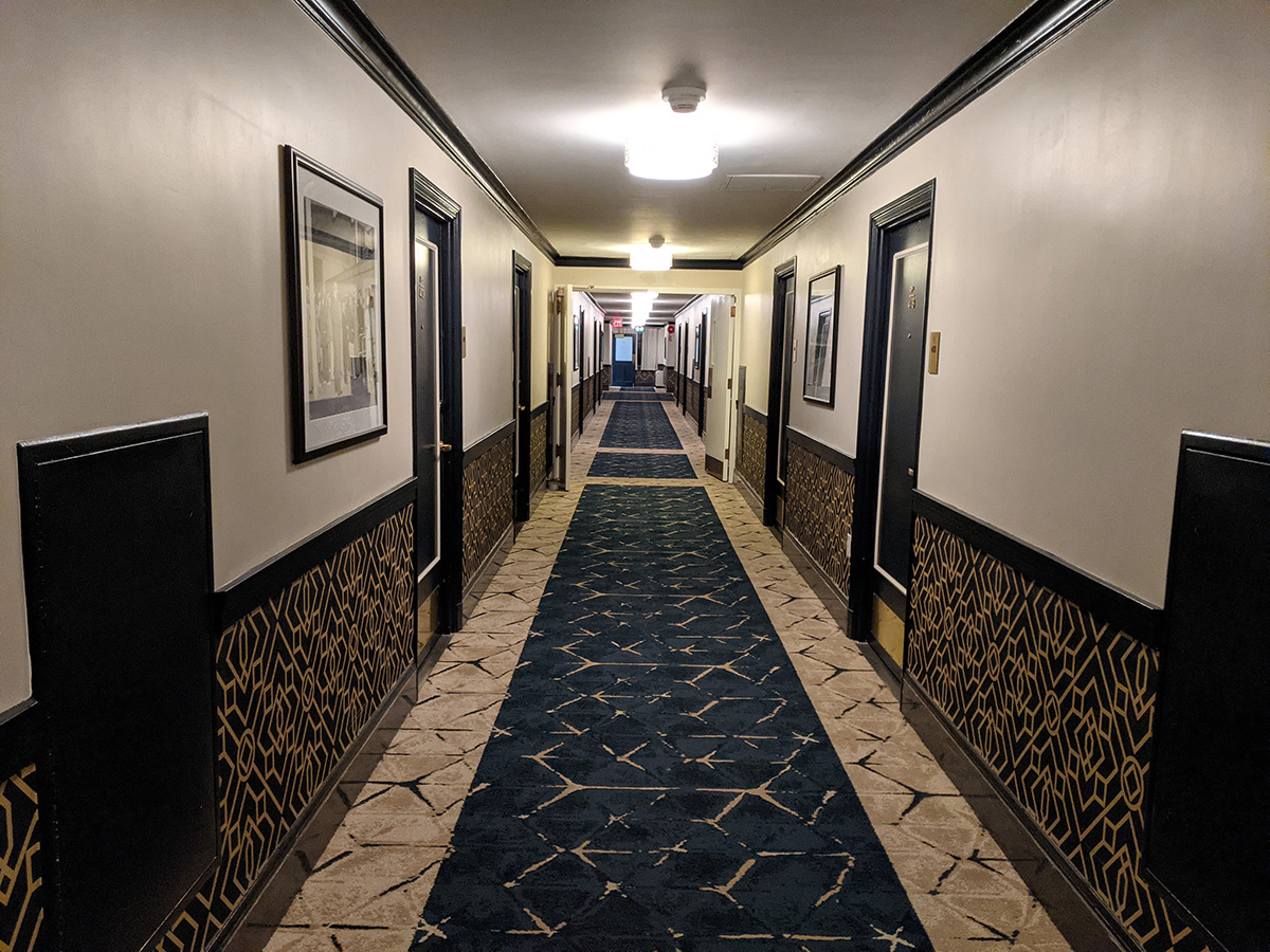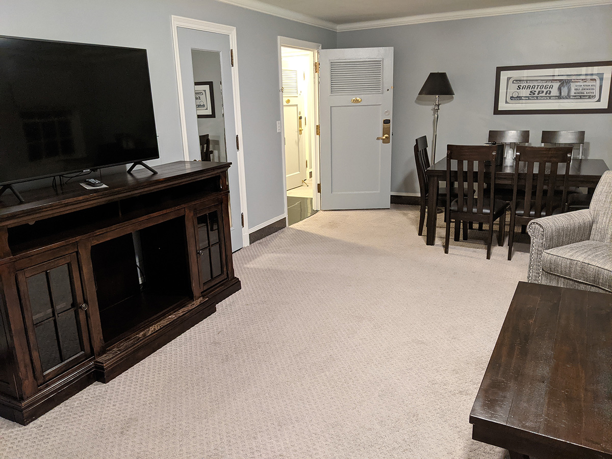 i could sense the history in the hotel. the hotel itself isn't very old, opened in 1935 as a place for guests to stay who were visiting the supposed natural healing properties of the various carbonated springs. my room was 1407 but when i got there the door said 1406-1407. i swiped the keycard and it brought me inside a foyer with two doors: one for 1407, one for 1406. the door for 1406 was opened, inside was an entertainment room with its own bathroom, while 1407 was the bedroom. the keycard opened both 1406 and 1407.