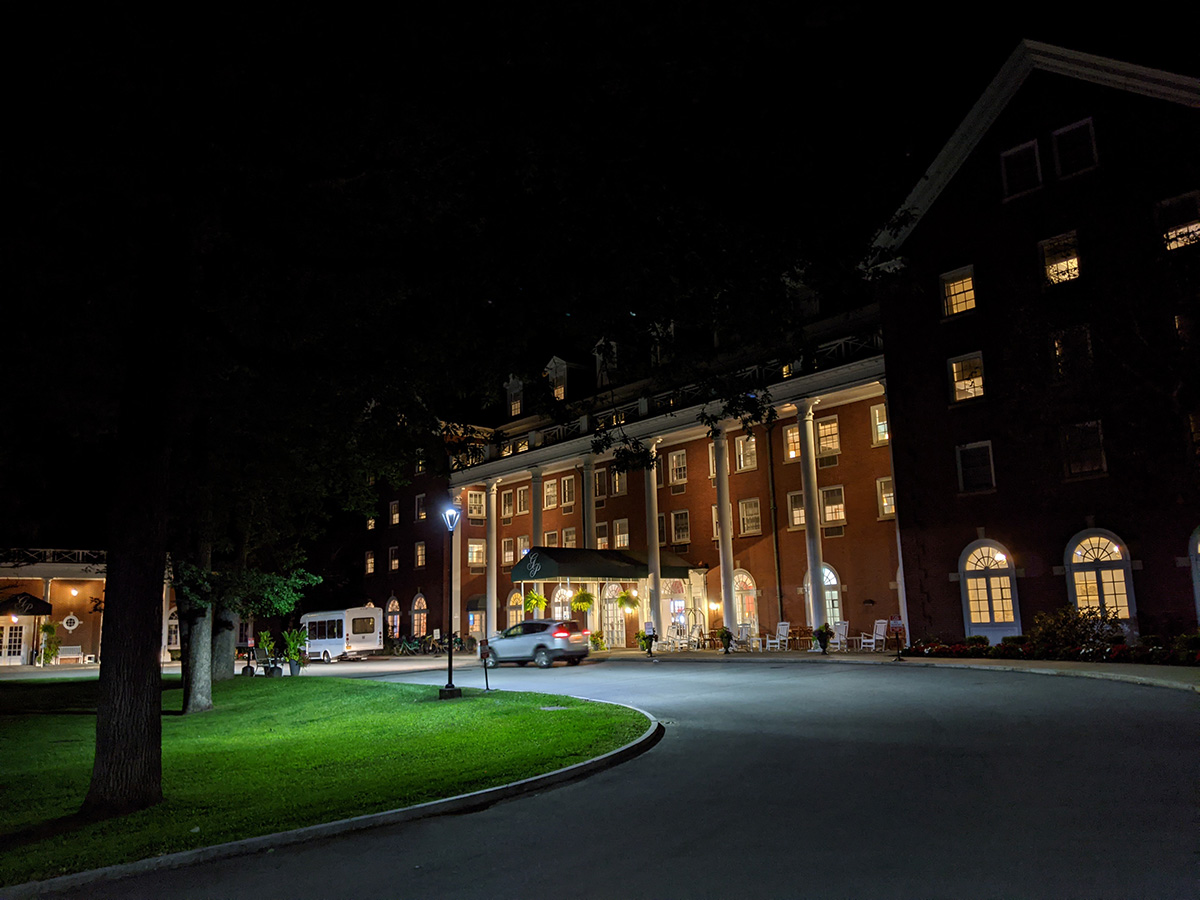 they'd booked me a room at the gideon putnam hotel located inside the saratoga spa state park. leaving john's parents' house, john warned me that it'd be very dark. looking up a the pitch dark sky, all i could see were stars. if i was so tired and wanted to get to the hotel to crash, i would've stayed there longer to admire them. however the darkness was also scary, and pulling out of the driveway i was worried about accidentally driving into a ditch. it was pitch dark throughout and i used my high beams unless an oncoming car was heading my way. i saw an animal scampered across the road: there was no mistaking it as a fox. earlier john had told me he'd seen foxes around as well. the last and first time i saw a fox in the wild was in hamptons many years ago, and it was off the side of the road and i didn't get a very good look.