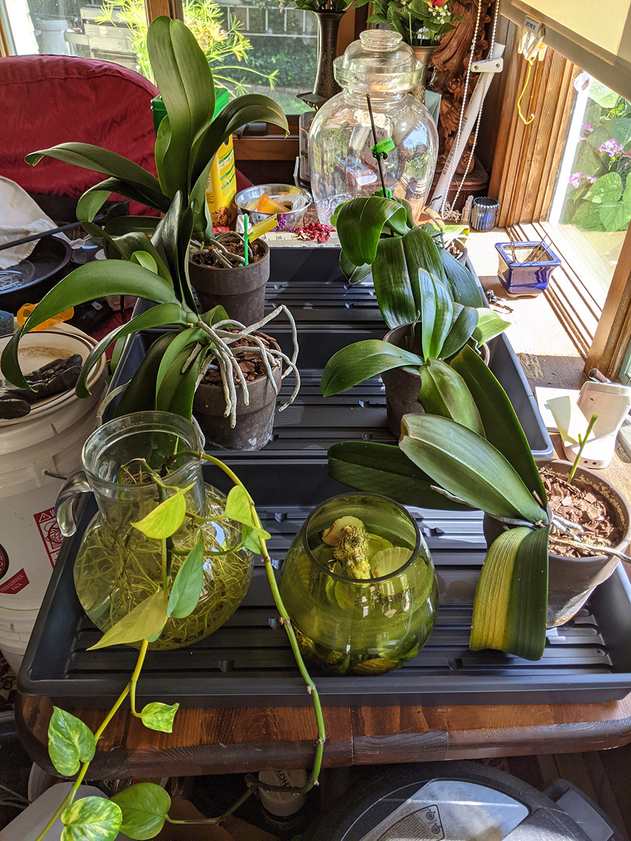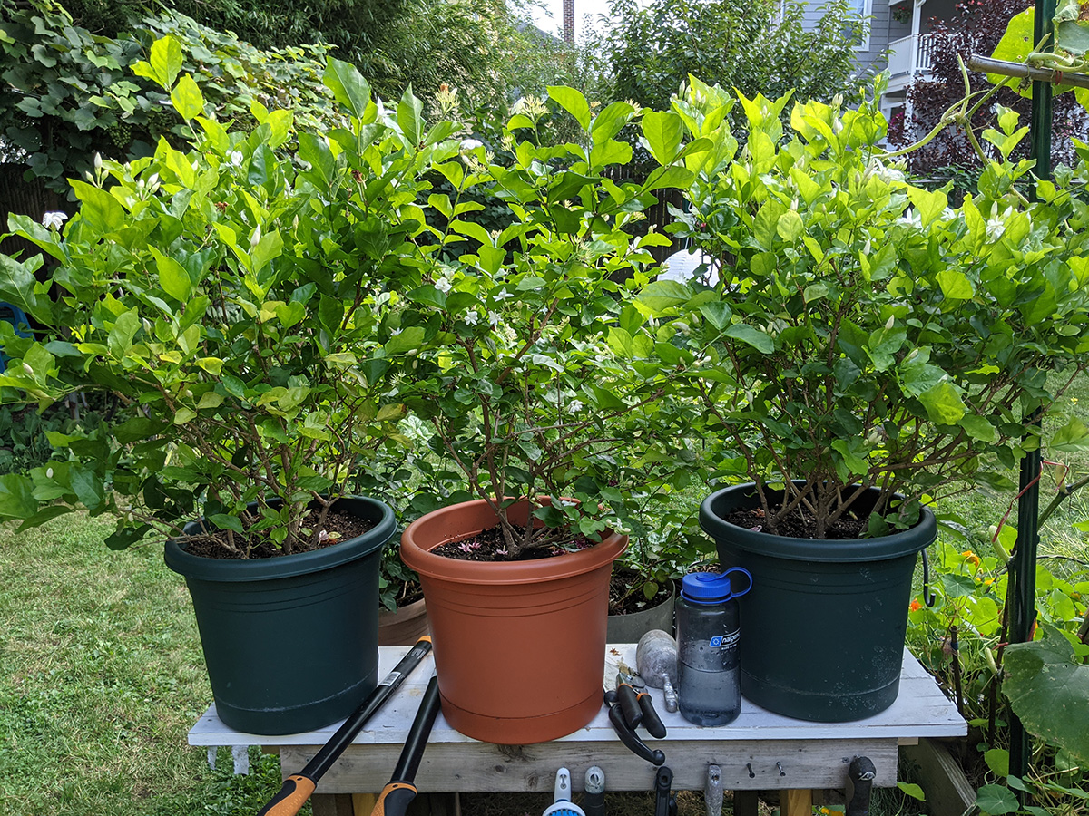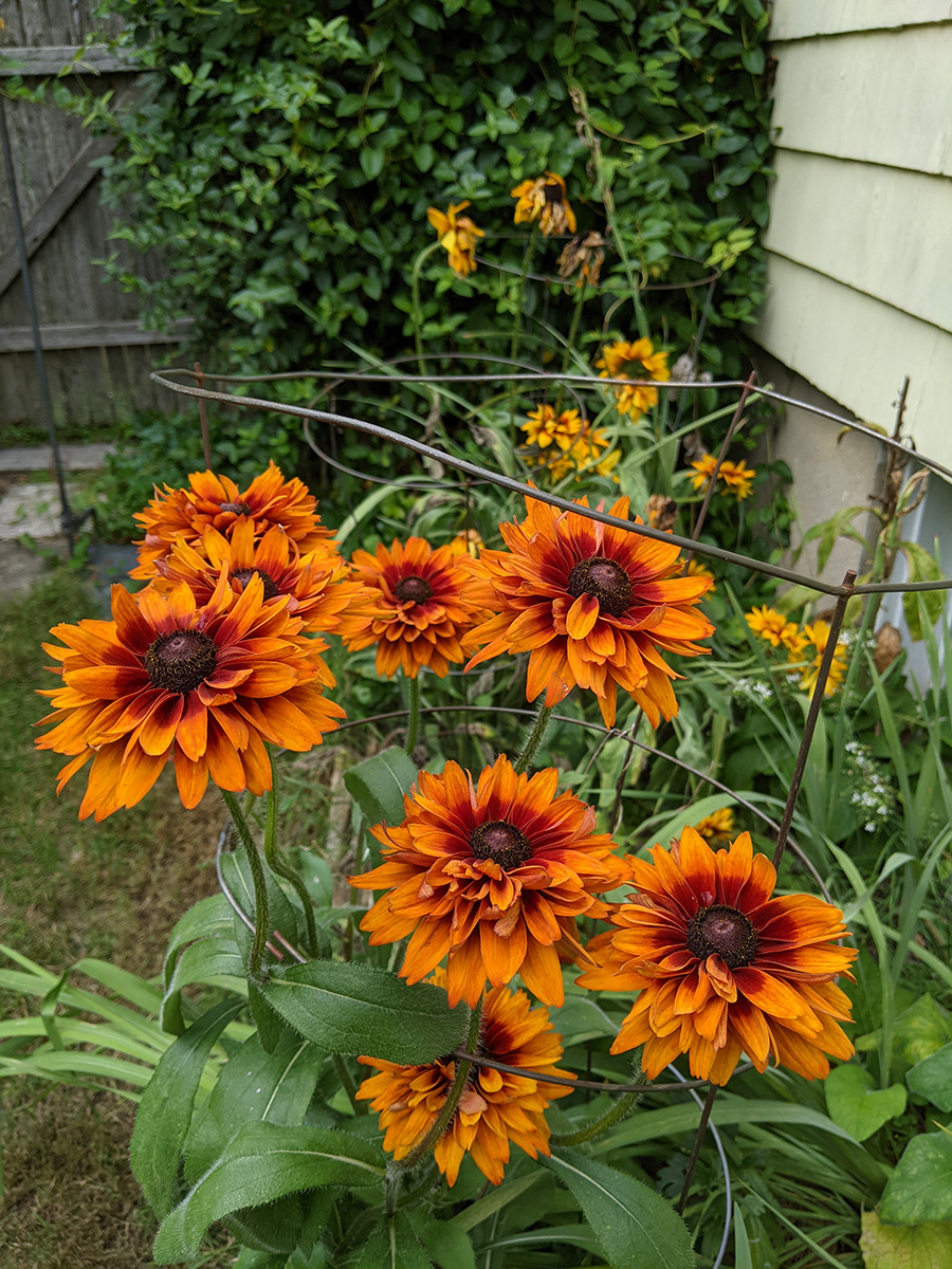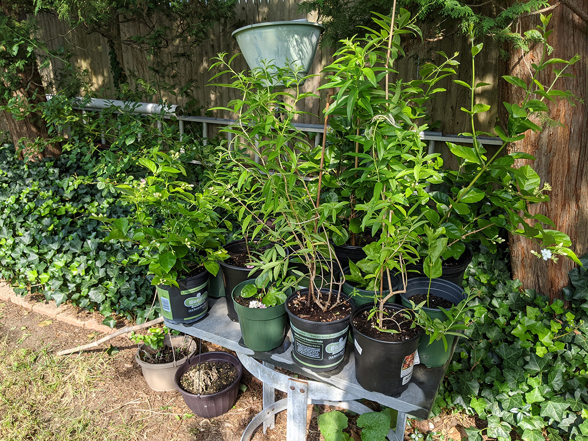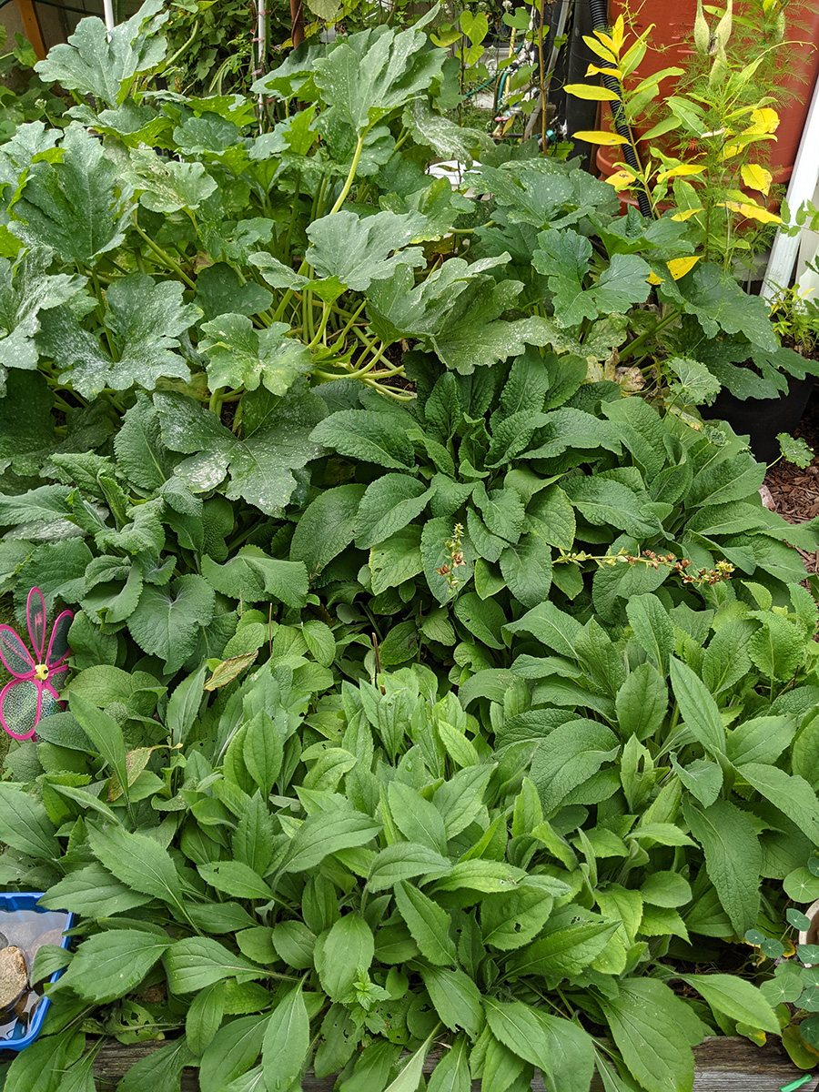 we're expecting some rainstorms tomorrow night, so i didn't have to worry about conserving any rain barrel water as i watered the backyard, including reseeded grass patches and garden beds. i wanted to water the front yard as well but i knew if i left the backyard hailey would start barking again so i didn't.