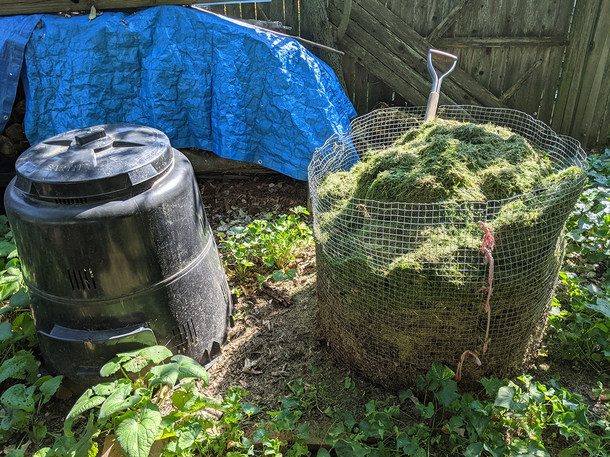 since i was cutting 1-1/2 position lower, i ended up collecting a lot of grass, enough to fill up half the compost bin. afterwards i dug a hole in the center so the compost could at least breathe since there was too much grass for me to properly mix everything.