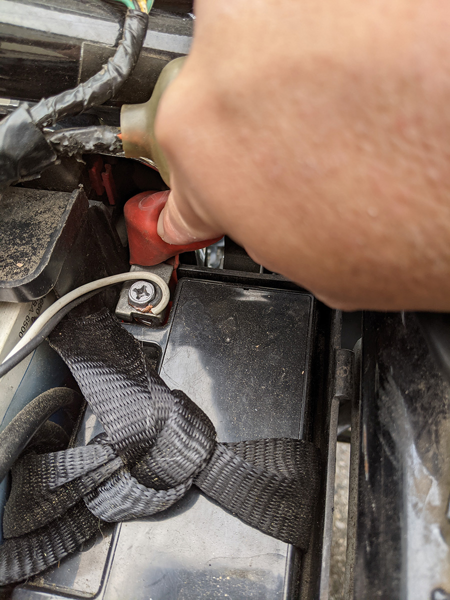 once i got back, i removed the battery so i could fully charge it indoors. the mechanics really tightened the screws on the battery leads, they also look new, maybe they replaced them.
