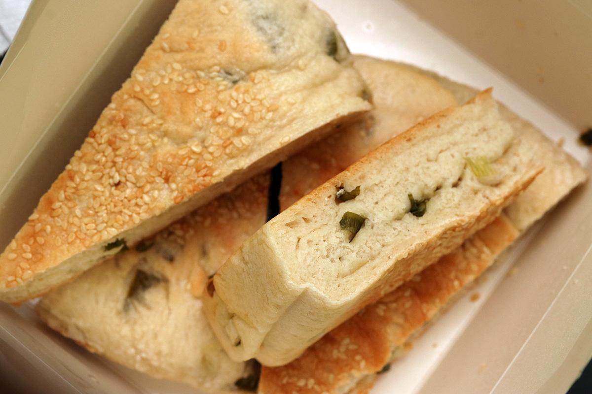 i had an early dinner, at around 6pm. i had some scallion bread along with the lamb steak. this particular piece was thicker than the rest, so it was rare at best, which is a polite way to say certain parts were still raw. i ate what i could but spit out a few pieces because it wasn't edible.