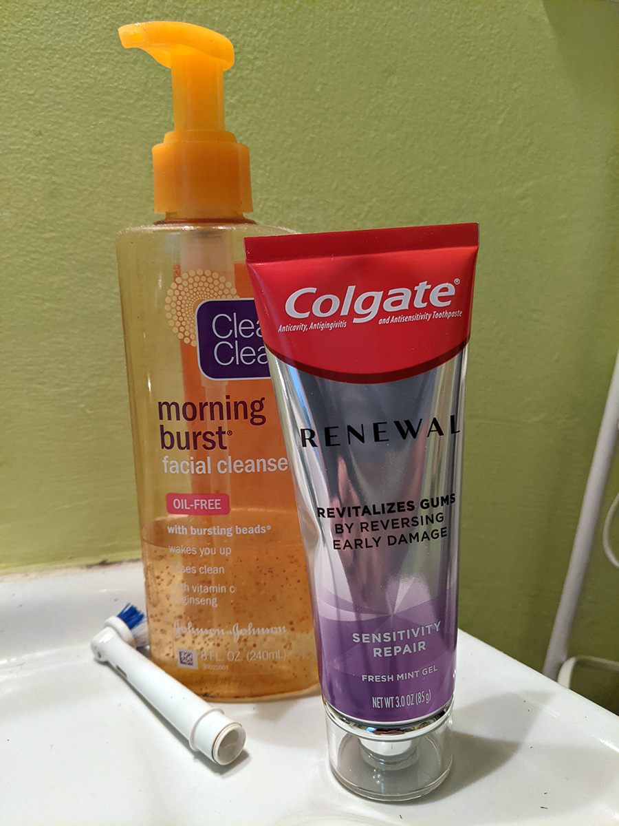 when i came back home i tried my new toothpaste. it was a choice between the colgate renewal or the crest gum detoxify. i couldn't decide, but went with the colgate because it advertised sensitivity repair. later i compared the two ingredients online, they both contained 0.454% stannous (tin) fluoride as the active ingredient, so they're basically the same toothpaste. stannous fluoride is more potent than the typical sodium fluoride found in regular toothpaste. i read it's 3x more effective in preventing plaque build-up, repairs early stages tooth decay, reduced cavities, and fight gingivitis. i should've been using stannous fluoride a long time ago! as for the colgate renewal, it was a clear blue gel with a minty taste. my teeth felt cleaner afterwards, but i think it was probably just a placebo effect. we'll see how my teeth are after a week of using this special toothpaste.