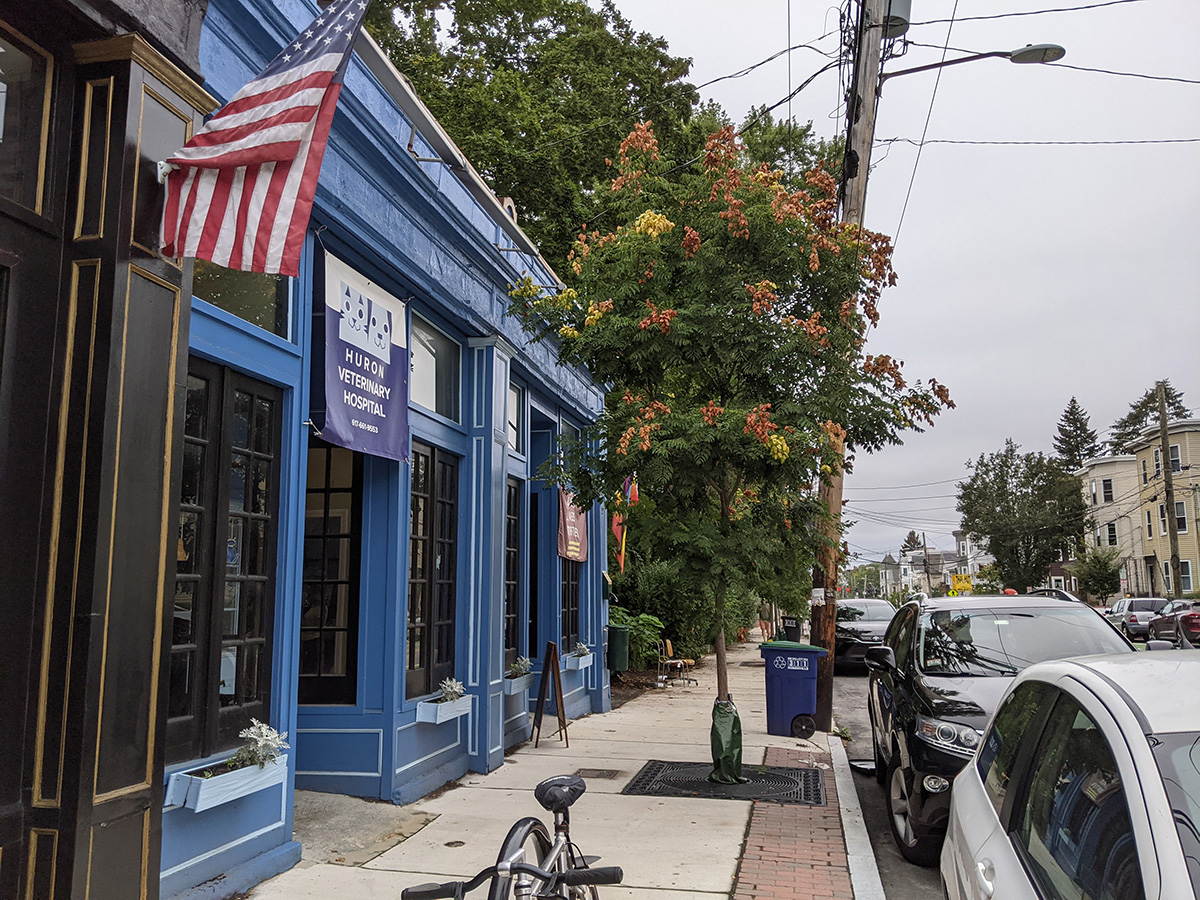 in the afternoon i went to the huron veterinary hospital on beacon street to pick up hailey's dog medicine. afterwards i went to the nearby walgreens to get some special gum renewal toothpaste that was on sale. that was followed by a stop at market basket on my way back to get some butcher shop half sour pickles.