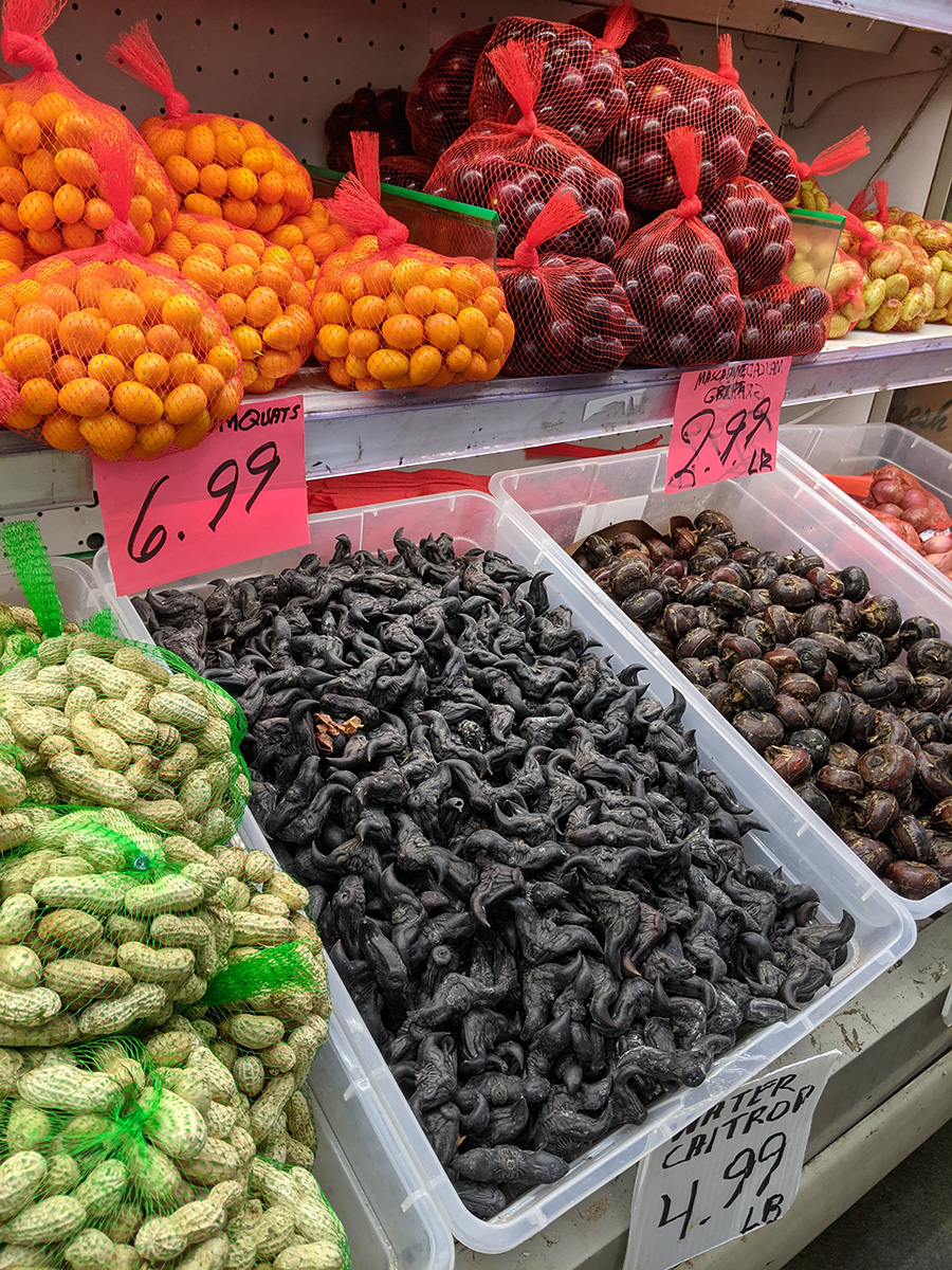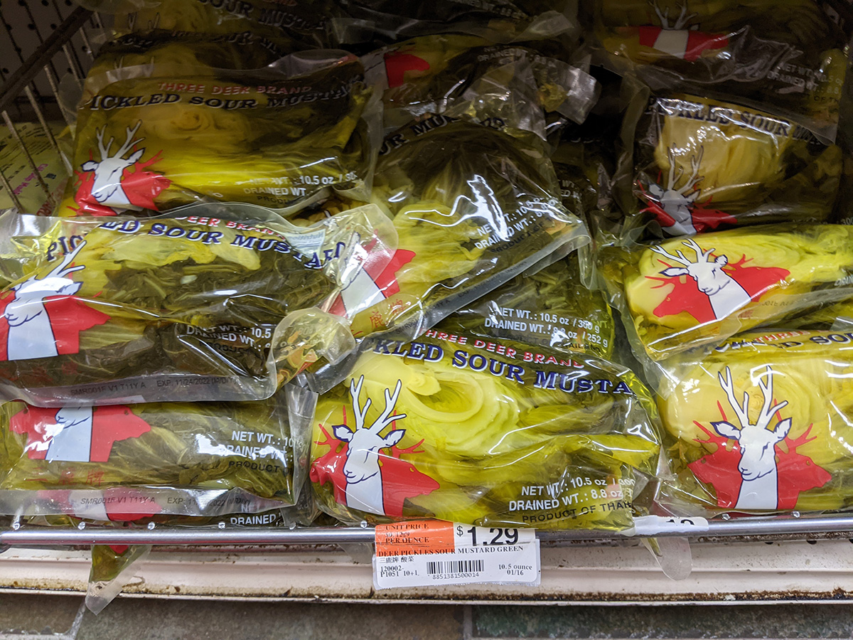 i pumped up my tires and left around 2pm, arriving by 2:30pm. i went to ming's market first, my mother asked me to pick up a few packages of three deer brand suancai (pickled sour mustard). i noticed a new store sign outside - it's now called lotus food (百åˆè¶…市) - but everything inside was still the same.