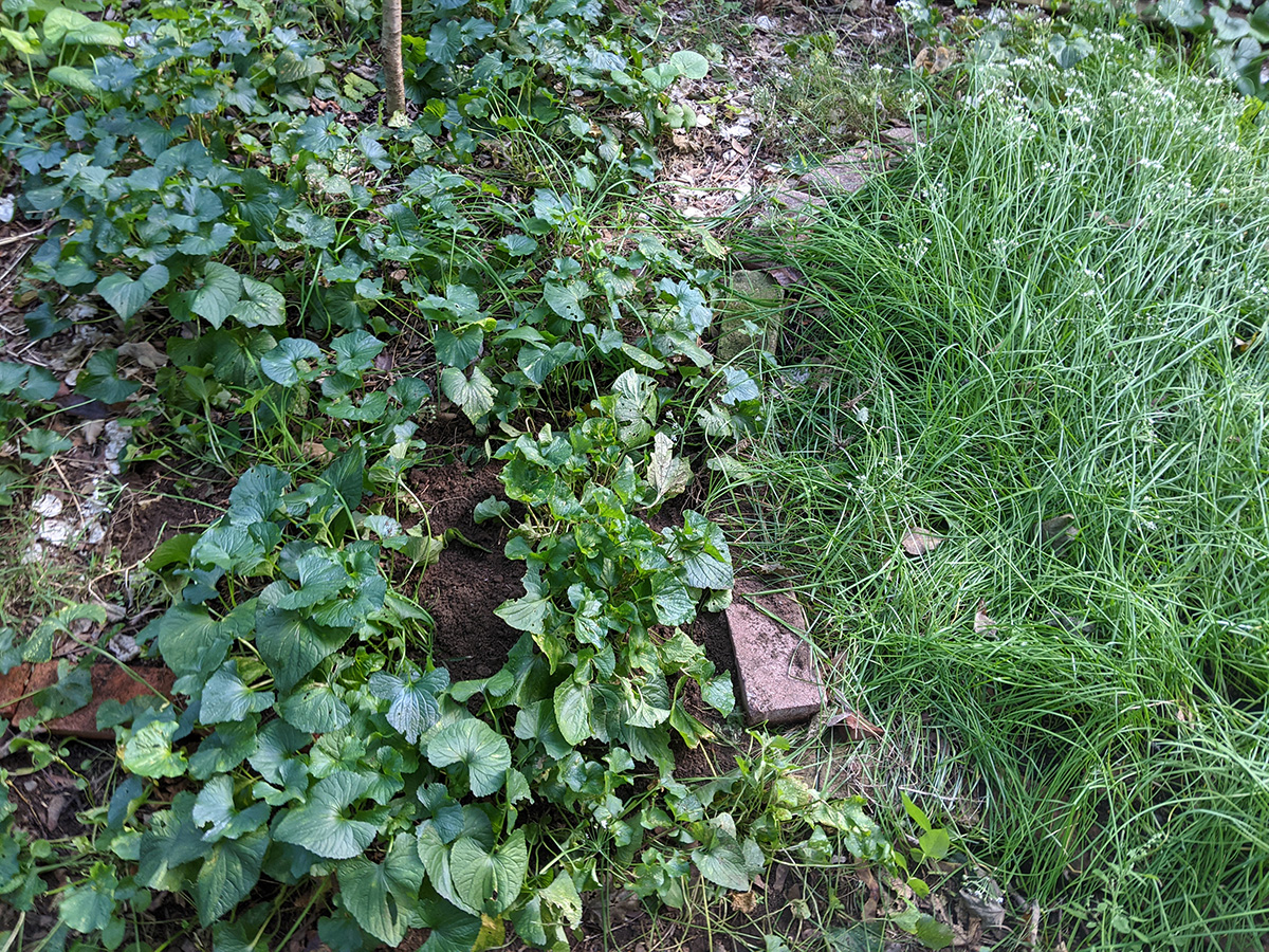 i also moved the pure white violets from the eastern side of the house to the southwestern corner, near the garlic chive patch. we're going to prune more of the maple tree in february-march, to give that corner of the backyard more sunlight, so it'll be a good spot for the violet.