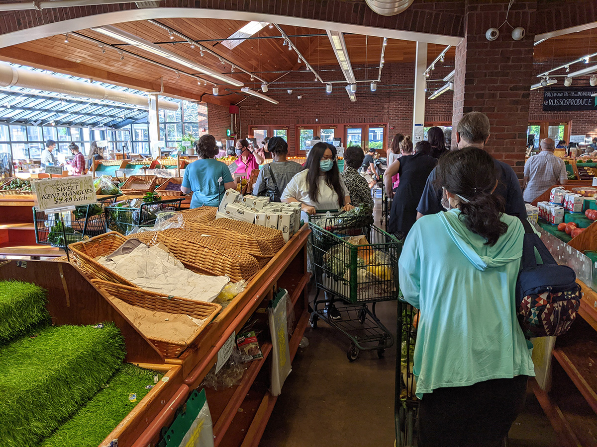 we got to russo's in watertown by around 5:10pm, less than an hour before those close for good. a nondescript sign outside casually said there was a store closing customer appreciation sale 50% off. i didn't believe it at first until i asked another customer who confirmed it. inside was mobbed with customers. everyone had a shopping cart filled with food. the line stretched from one of the store to the other, but it moved along very quickly thanks to an open register director. my mother and i kept getting the same thing: she picked up a jar of salsa, i did the same; she grabbed some asian pears, so did i; she bought some dried cherries, i did too. $170 worth of groceries ended up costing just $85.