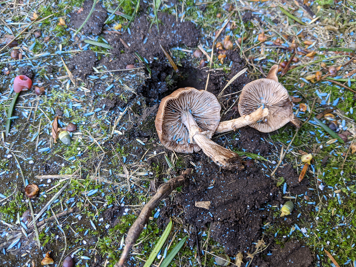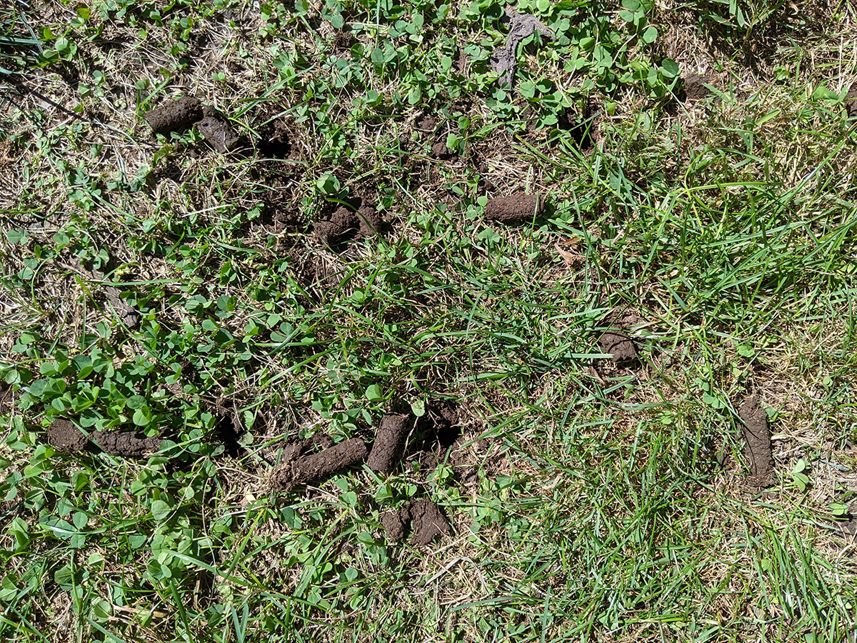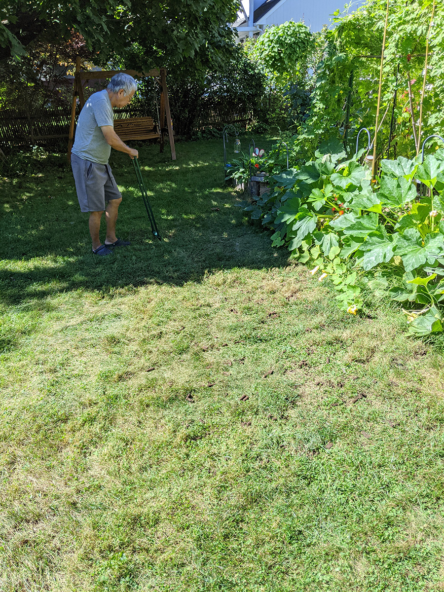 i was surprised we got so much rain late last night. but that was a gift, because it meant we could aerate the lawn (which should only be done when the soil is wet) and then reseed and fertilize. unfortunately the manual core lawn aerator tool we have kept on clogging. i tried dousing it with some WD40 lubrication, which worked for a minute before the holes got plugged up again. finally we just gave it, figured the dethatching we didn't yesterday was enough.