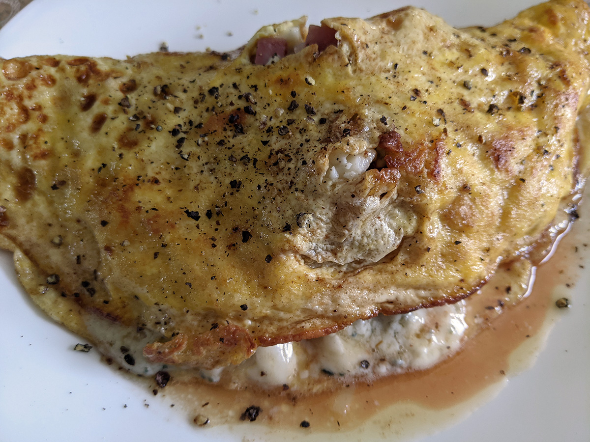 i went to belmont a little early today so i could make omelettes for my mother. i packed my leftover cubed ham, gorgonzola cheese, and half & half. i wasn't very familiar with the pan and how hot the stove was so the first omelette was slightly burnt (my mother's), the second was the best (after my mother cleaned the pan), and the third was cooked in brown burnt butter so it looked the dirtiest. my parents also didn't have sriracha sauce and that's like the secret ingredient to make an omelette really pop (although when we were nearly finished eating i found some sriracha in the back of the fridge).