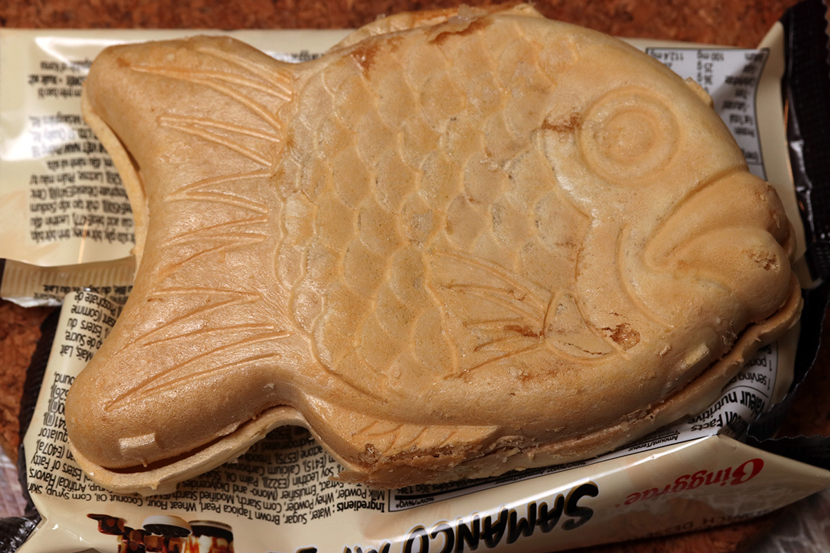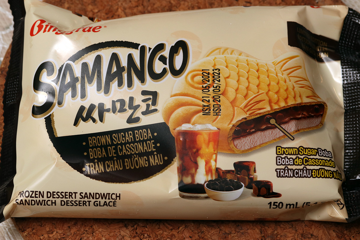 after we returned home, we each had a brown sugar boba samanco (taiyaki) fish ice cream sandwich. they had a bunch of green tea samanco at h-mart, but just a single package of brown sugar boba which i quickly snagged.