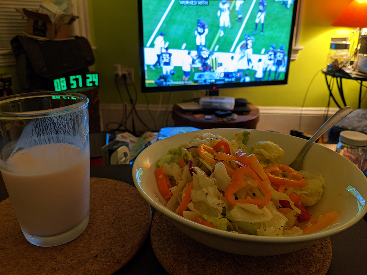 next stop was market basket, where i got $20 worth of groceries, even though i didn't need anything for this week. i did grab a bag of mixed salad greens, to go with the baby sweet peppers i got from haymarket last week that i haven't eaten yet. there were also some kefir on sale, i bought two bottles (mango and strawberry).