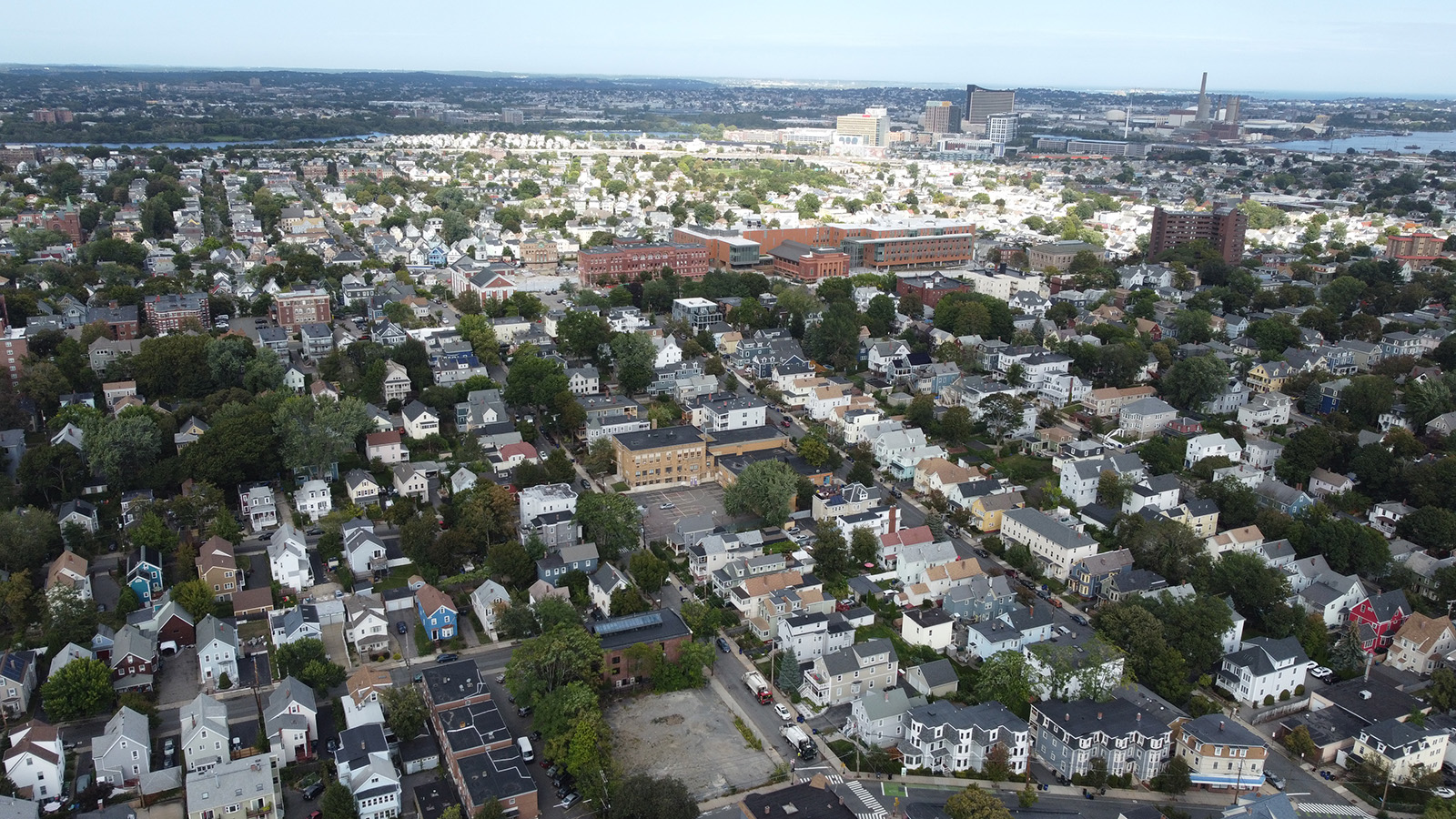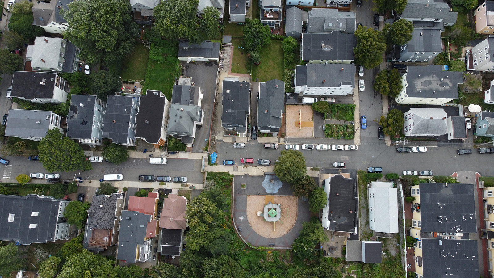 afterwards i tried to find place to do some drone flying. first i went to lincoln park behind whole foods, but there were too many children there, and i didn't want to risk crashing the drone and having it land on a little kid. i then biked all the way to osgood park, where there was nobody around, and i quickly launched my drone. i realized the best place to fly is from the top of a hill, not the bottom, since the hill itself will naturally add elevation so i can get over the 400ft legal height limit. even though it was a relatively clear day, it was just too windy, especially at higher elevation. a few times i could see the drone get pushed so the horizon was crooked. i decided not to risk flying it too far and quickly brought it back down after taking a few photos.