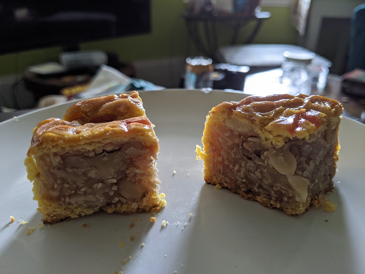 i know it's been a few days since the autumn festival, but i finally ate one of the mooncakes my 2nd aunt bought me, mixed nuts flavor. it's akin to fruit cakes, nobody like them yet this flavor continues to be made. she also got me a black dates mooncake, which is my favorite, but i haven't eaten that yet.