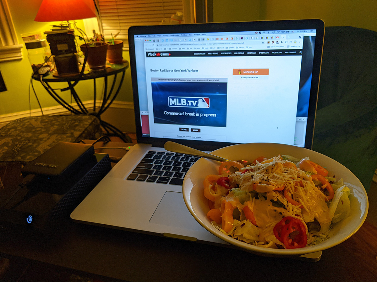 i had another salad for dinner, this time with thousand island dressing. afterwards i backed up some photos and cleared 30GB worth of storage space from my laptop.