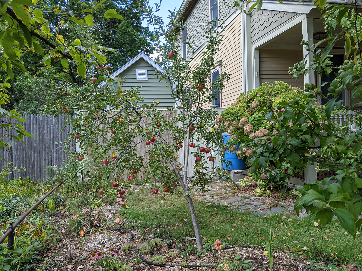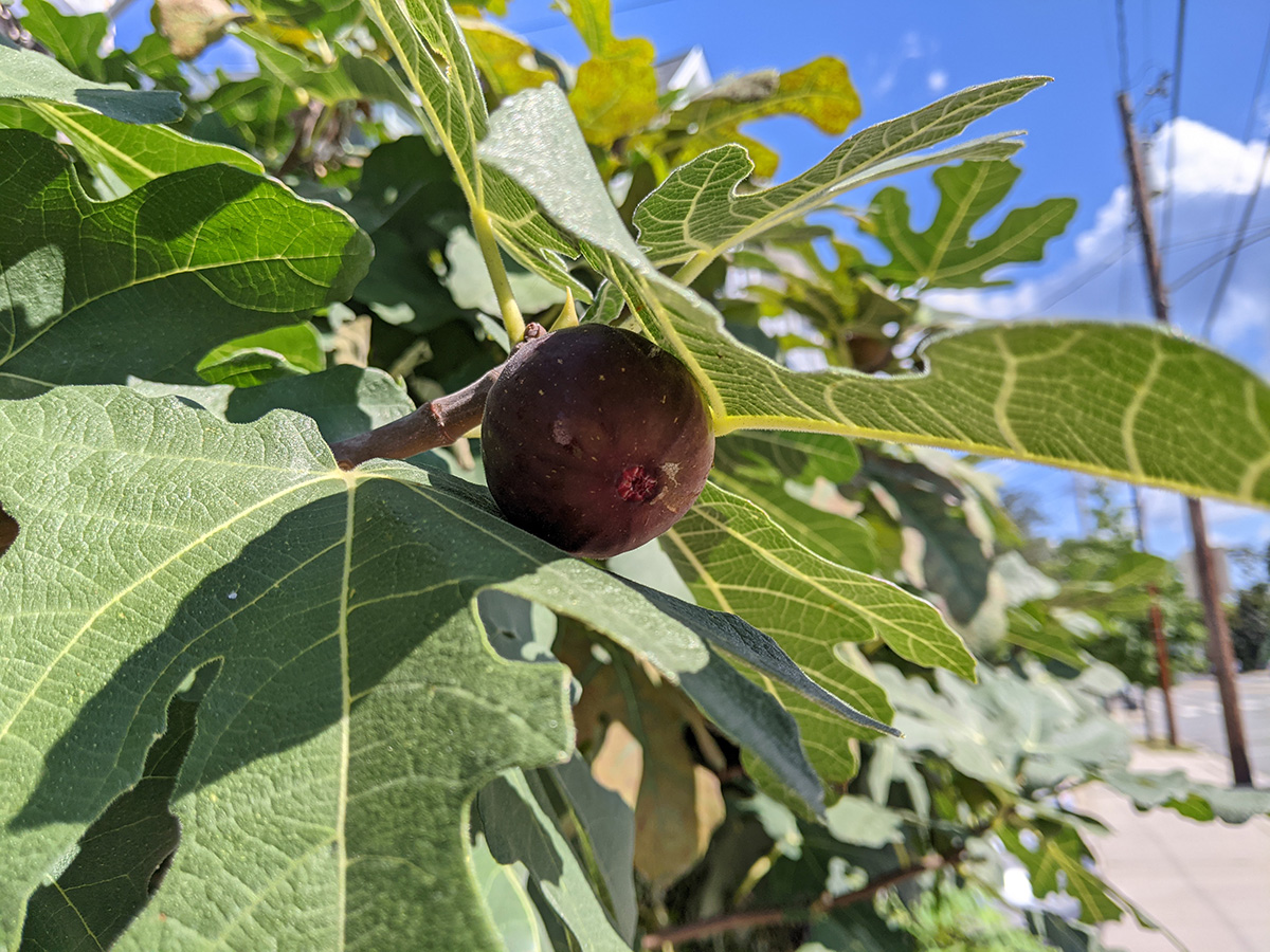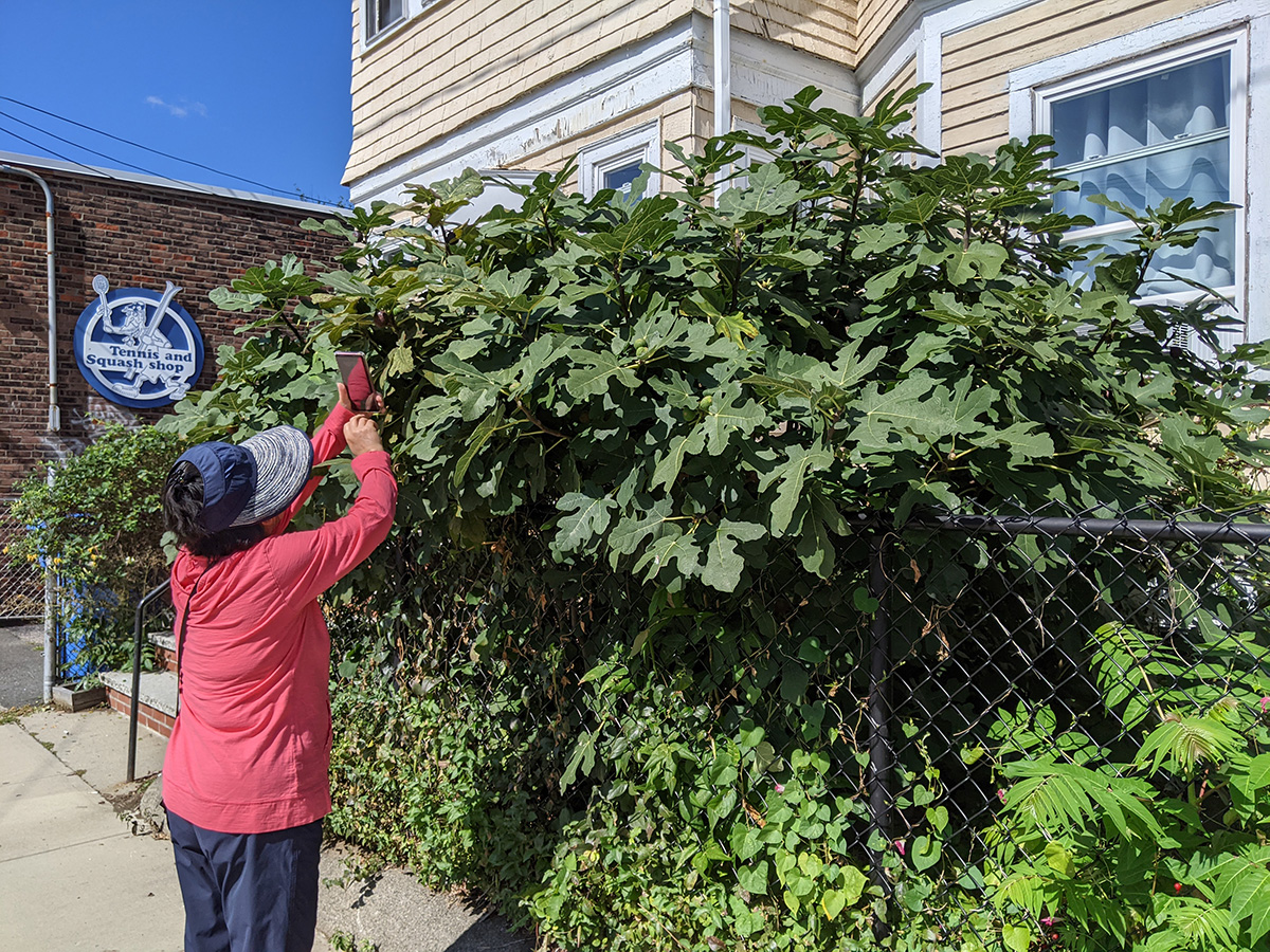 i introduced my mother to pokeweed, and asiatic dayflowers, as well as sour crap apples, and strawflowers. coming back, we saw a massive (by new england standard) fig tree growing outside of a house on belmont street. it doesn't seem like the owners even wrap it up (too big anyway), but instead leave it to grow. it has an amazing spot, southern facing, a full day of sunshine, with the house behind it to give it some residual heat and shelter. i was tempted to try one of the ripe figs but there was somebody outside who looked like he might live at the house. maybe another time!