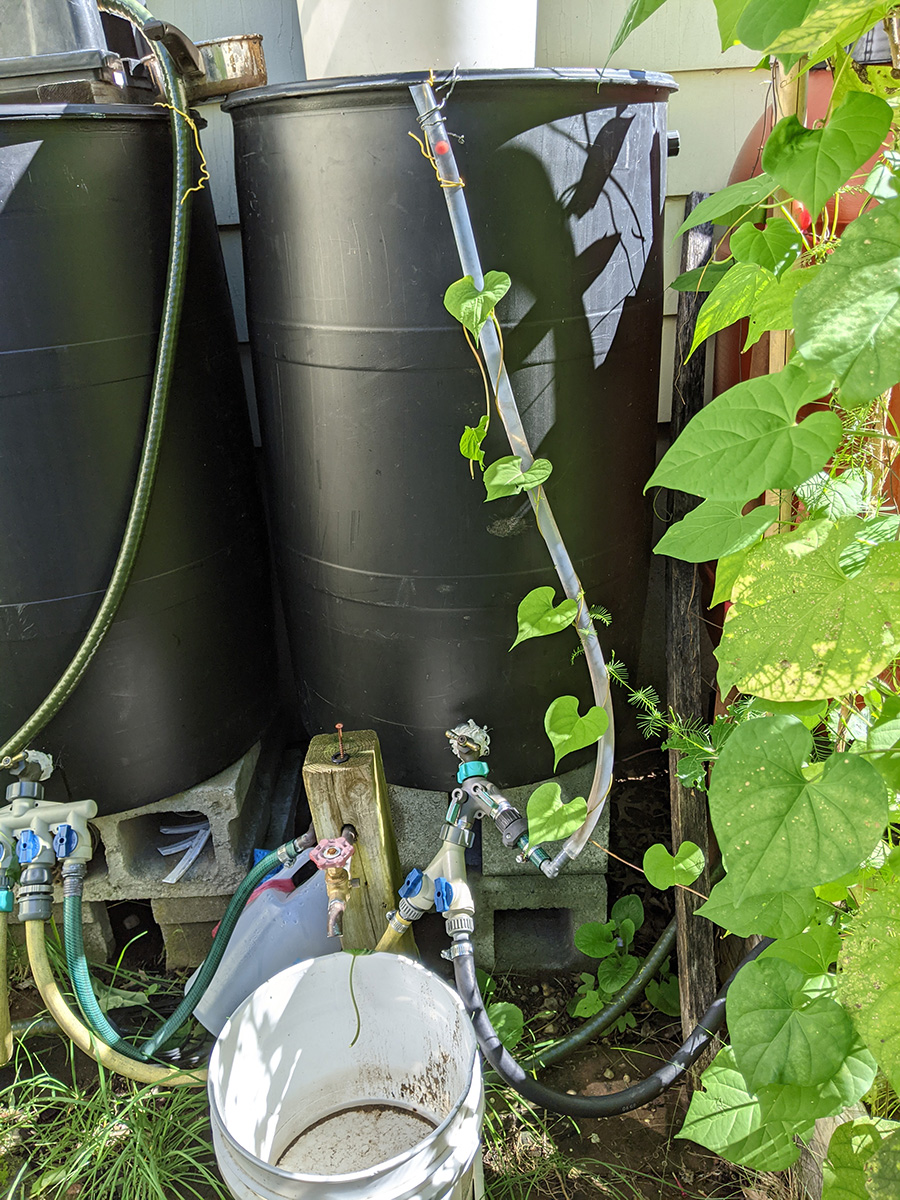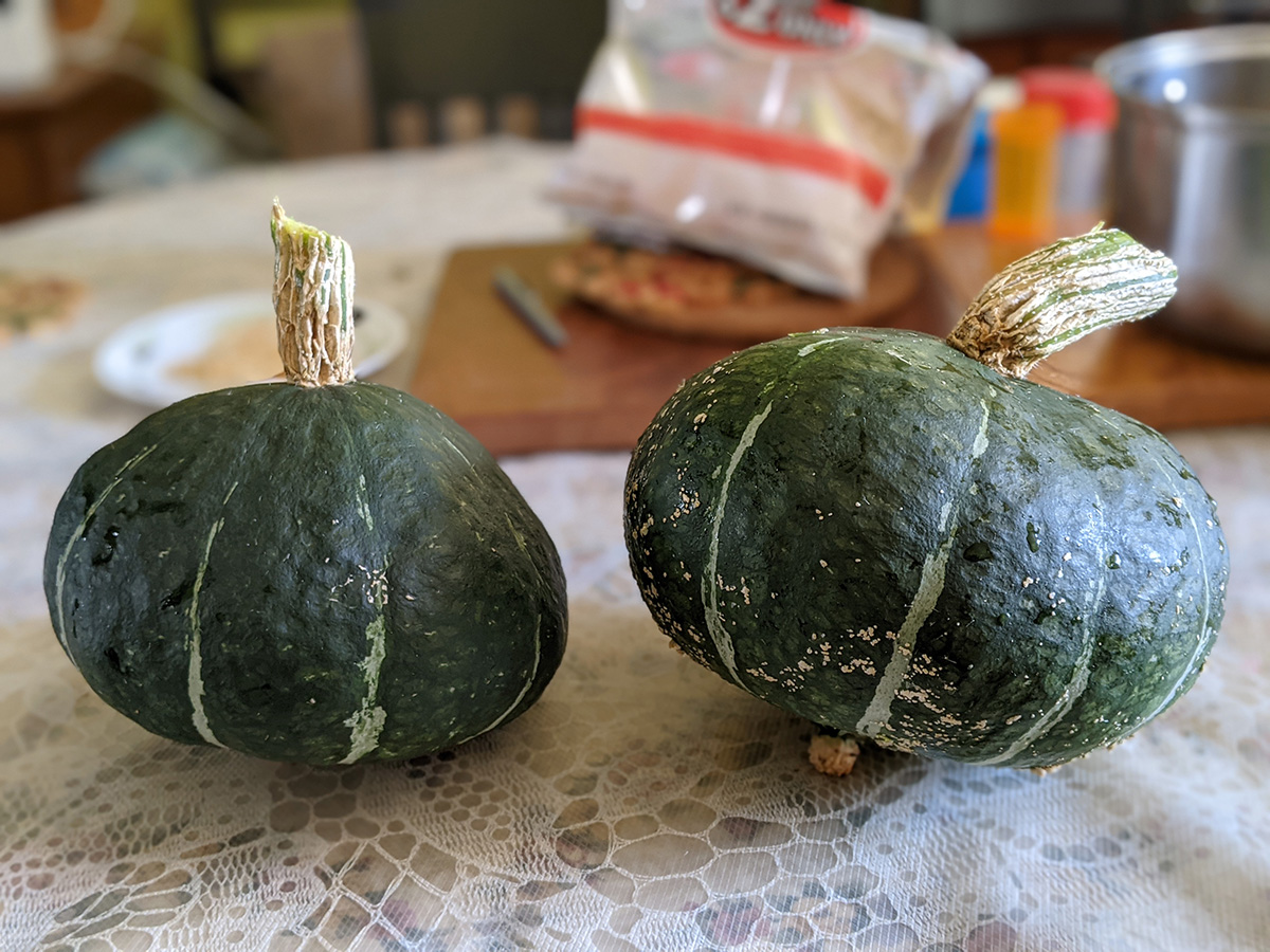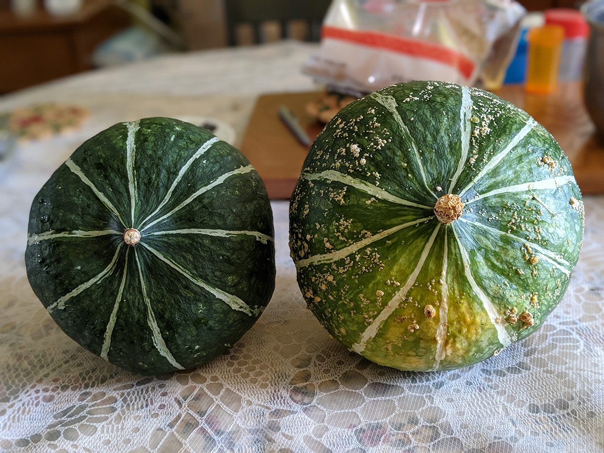 i checked the rain barrel gauge when i arrived in belmont, it was at full capacity. the overnight rain meant we wouldn't have to water today. my father harvested all the "honeysuckle" squashes - so called because these buttercup squashes were growing all over the honeysuckle vines. there was one hanging across the doorway that my father said looked dangerously close to fall because the stem was rotting, so we decided to harvest all the squashes. initially we just saw two - including probably the largest squash we grew this season weighing 5.3 lbs. - but he ended up finding a third squash, about the size of a softball.