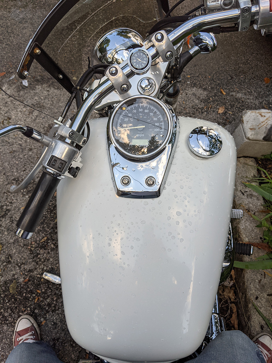 it must've rained a lot overnight but i didn't hear anything. i only knew it rain from the puddles on the streets and the fact that my motorcycle brakes were making loud squeaking noises whenever i slowed down because i didn't cover it up last night.