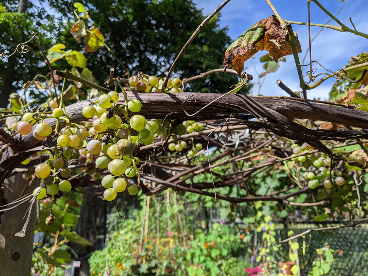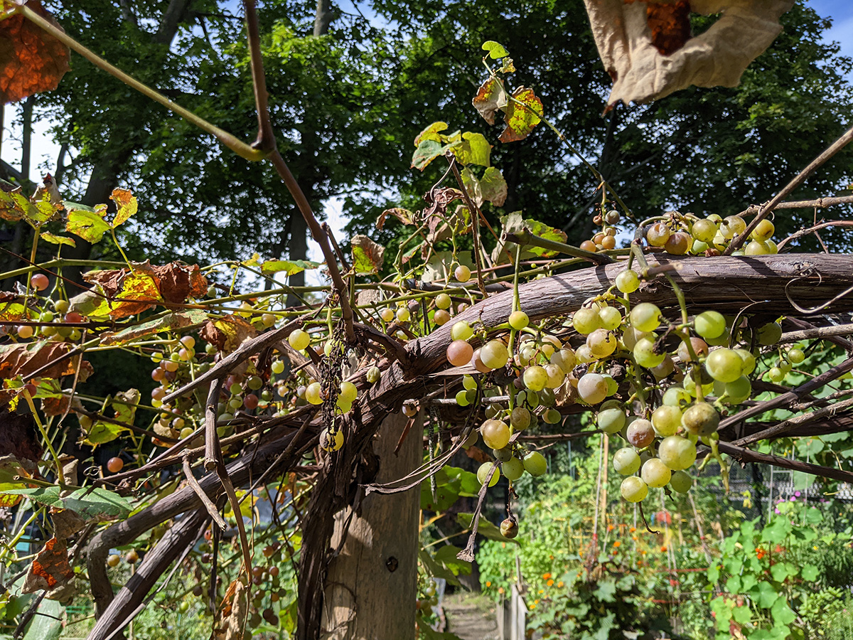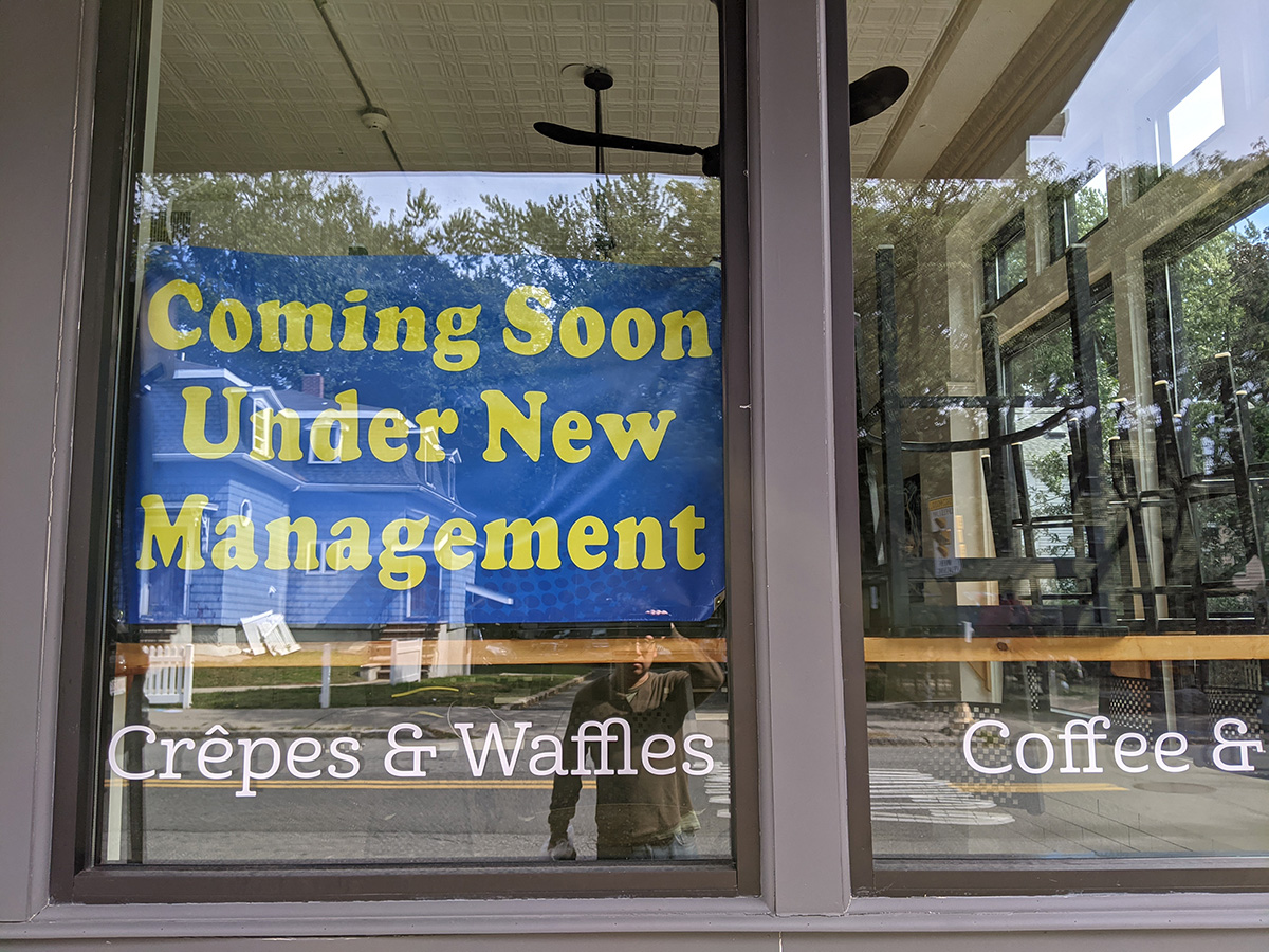 i took a quick peek of the concord grapes in the back of the community garden. they're not in great shapes either, diseased leaves and shriveled grapes. does anyone have any good grapes around here? is it just impossible, given the amount of diseases? i also spotted a sign at the crepes & waffles place, saying there was new management coming. i've only been in that place one time, not to eat, but to ask some census questions about a neighbor. i would've preferred it stayed as the old oxford spa, where i've occasionally gotten sandwiches from. their larry bird was especially good, a hearty thanksgiving turkey sandwich any time of the year.