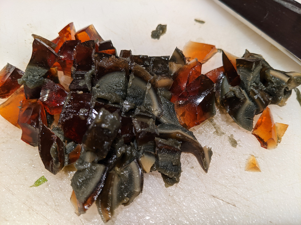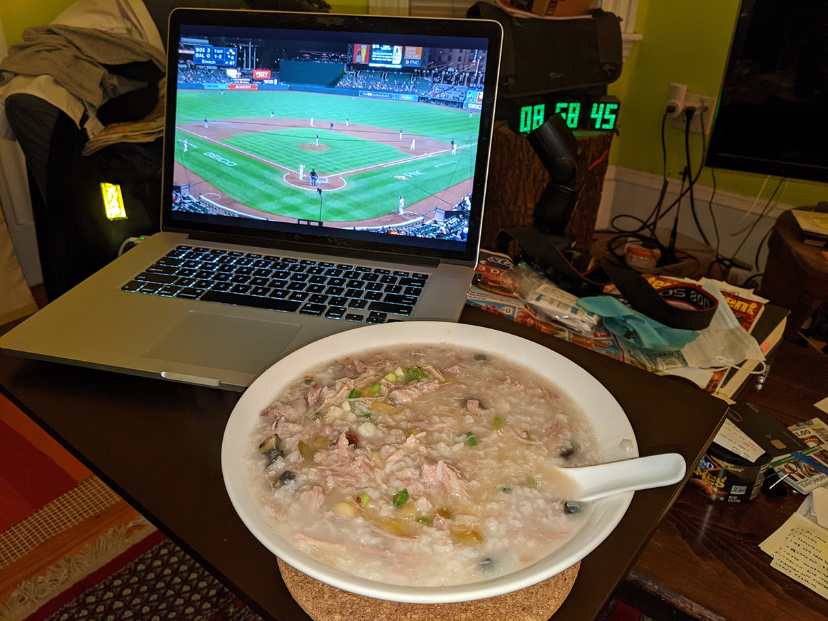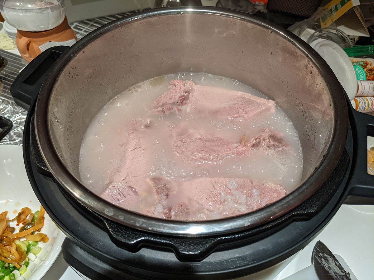 i haven't made century egg pork bone congee since july, nearly 3 months ago. i always have some frozen spare ribs in the freezer on standby in case i need to make it. the recipe is easy, there's just a lot of waiting: 20 minutes for the pressure to build, 35 minutes of pressure cooking, then 20 more minutes of non-pressurized "natural release" cooking, followed by a few minutes of quick sautéing after removing the bones and shredding the pork.