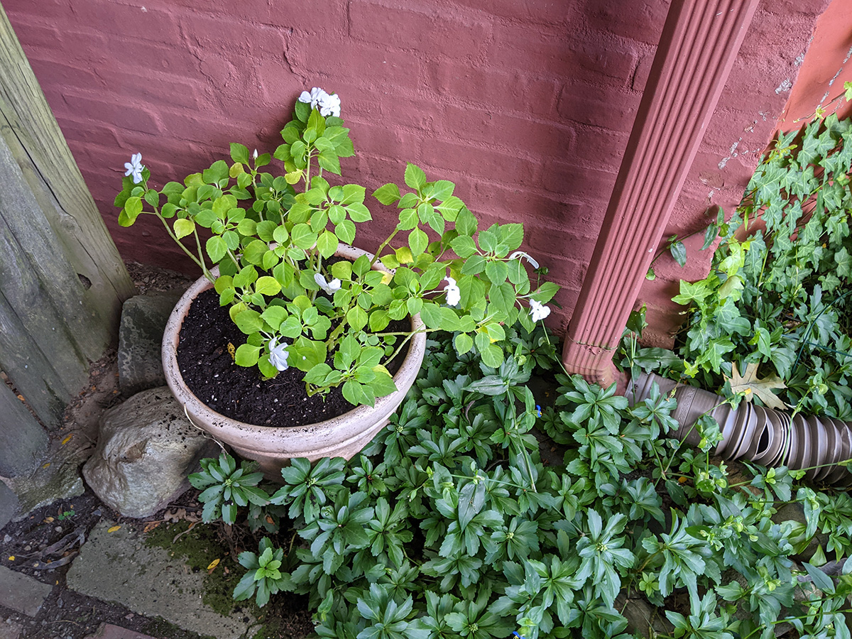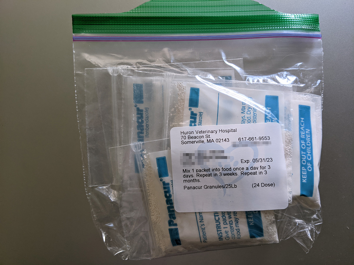 i ate my sushi while watching the news. later i swept the sidewalk clean with a broom and transplanted one of the backyard impatiens to the front yard side pot (there used to be an impatiens but it died). i then biked to huron veterinary hospital to pick up hailey's medication. my sister told me her dog tested positive for whipworms. the dewormer medication (panacur) is expensive at $100.