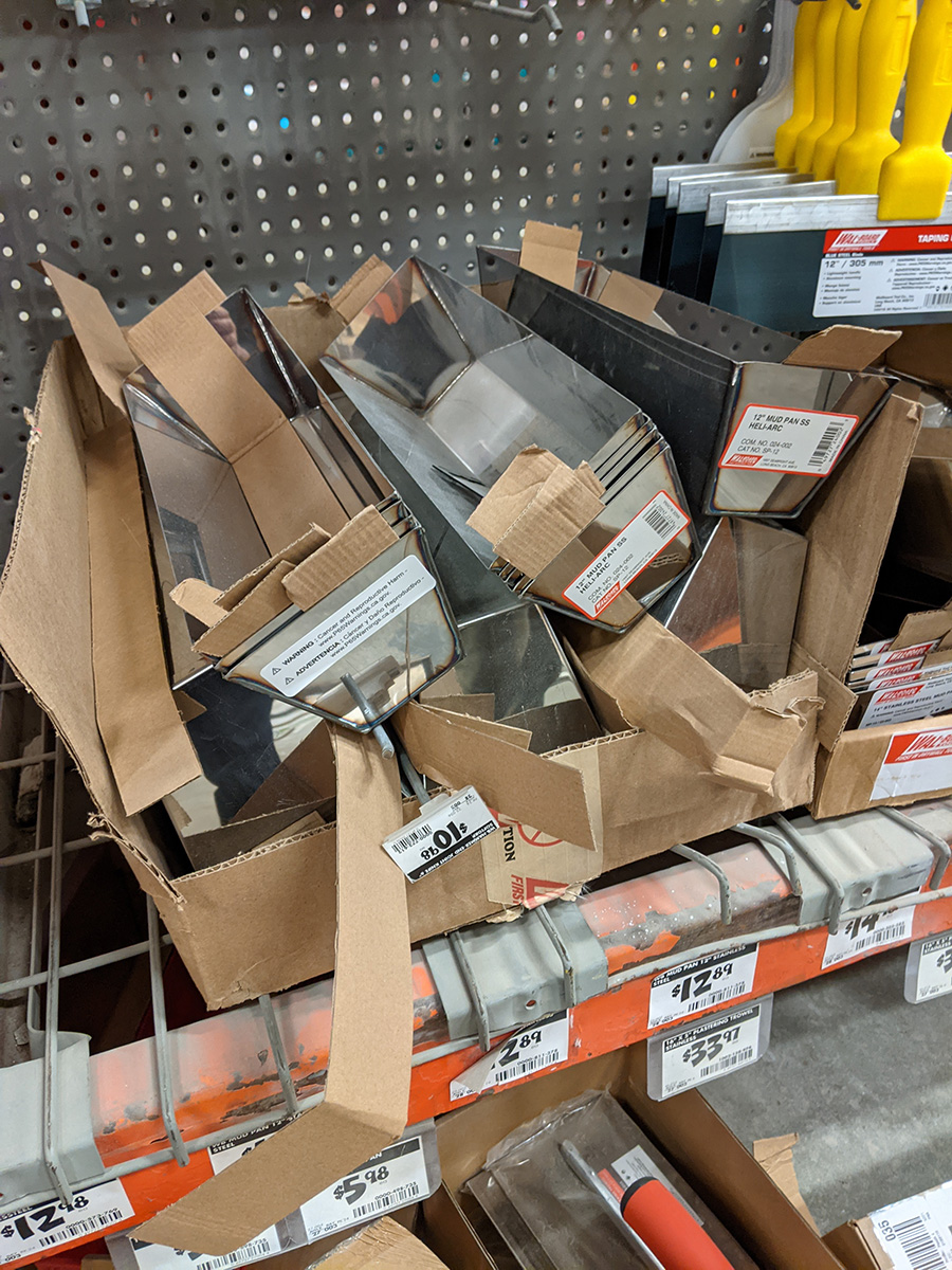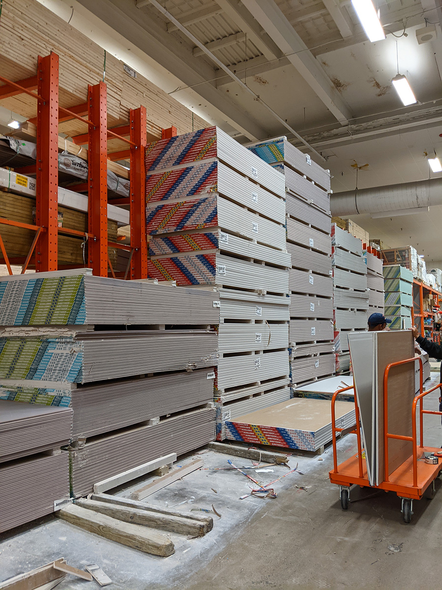 after target, i crossed the street and went to home depot. i wasn't really getting anything, just wanted to check on the prices of the various materials and equipment i'd need to patch up my bathroom wall. while i was there, this random middle eastern old man asked me to help load 6 heavy piece of sheetrocks onto his cart. he was kind of rude and i didn't want to help him, but there was nobody else around.