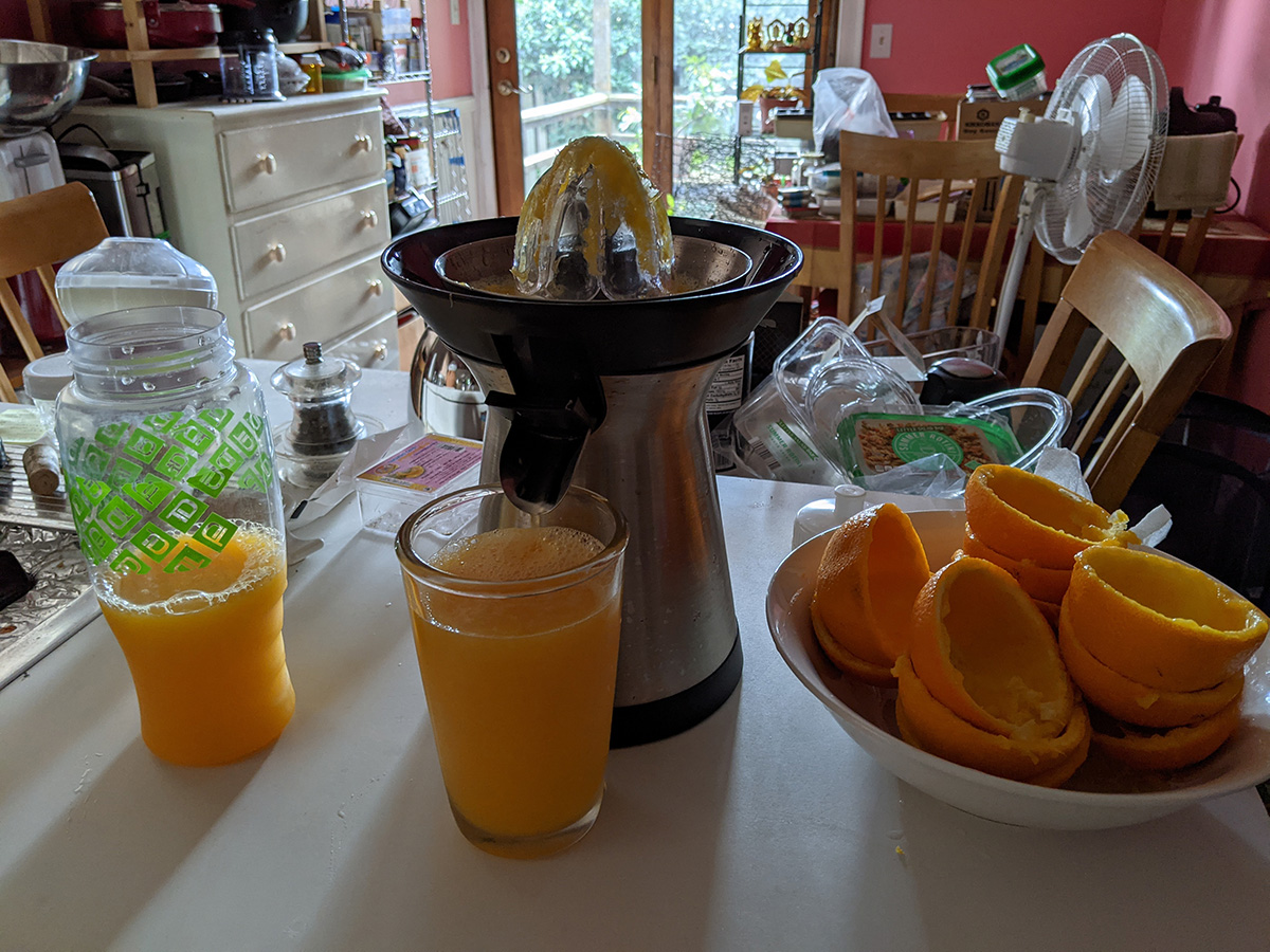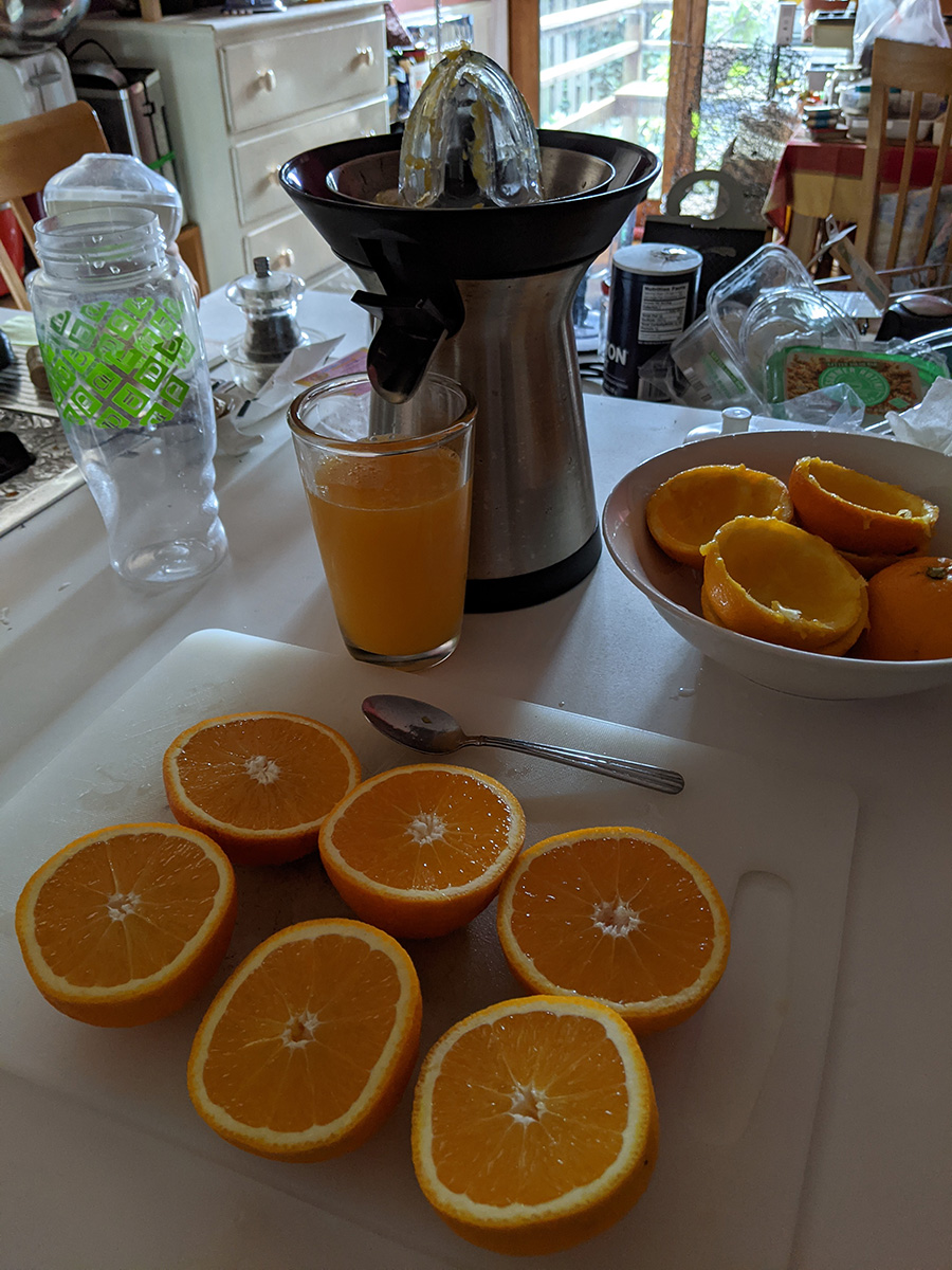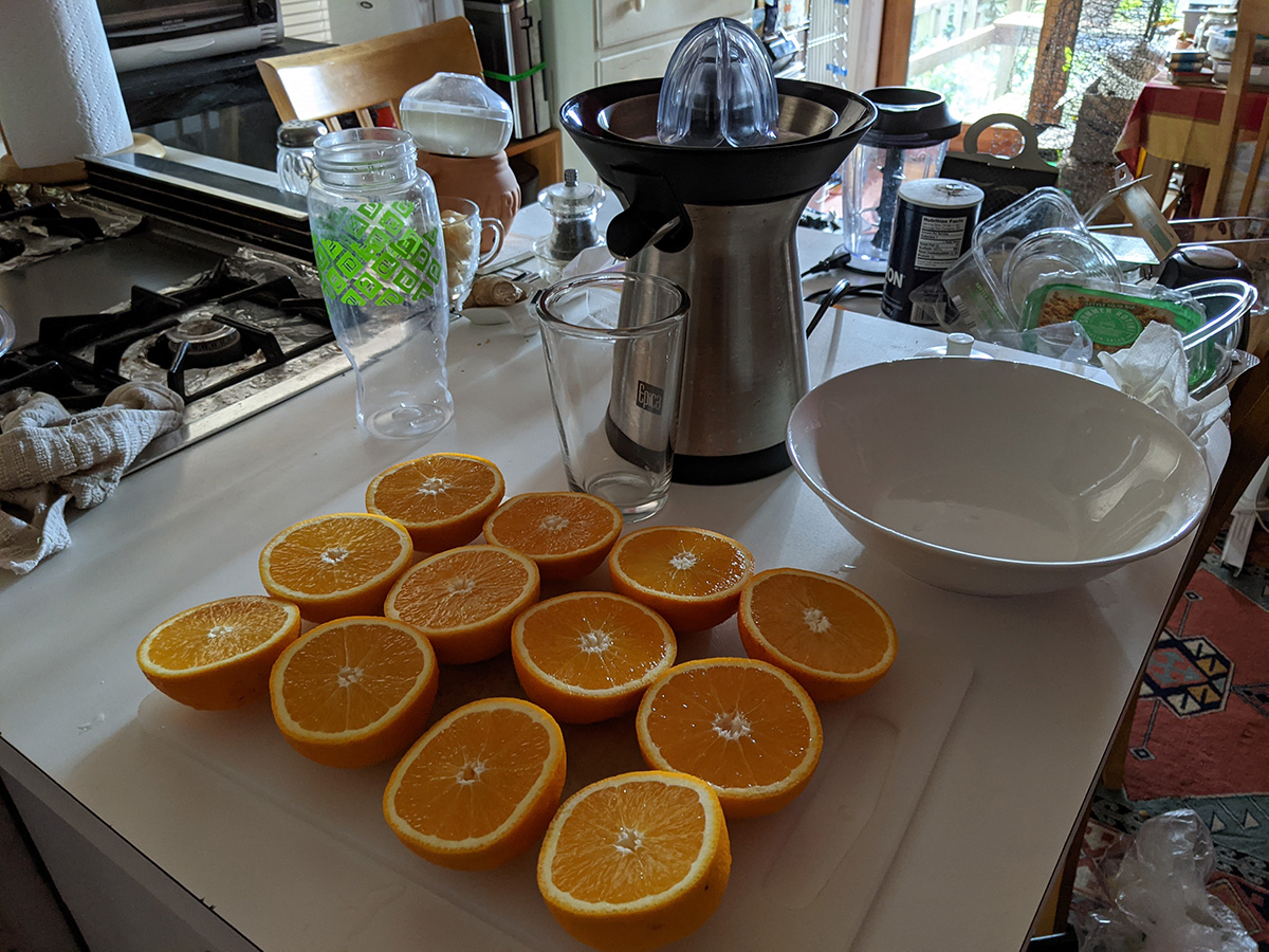 i cut up 6 navel oranges and fresh squeezed some juice for my mother. i tasted some of the pulp, it was a little sour. i think it's currently a little early for the winter orange season, they should be sweeter in another month or so. but these were good juicing oranges, just 3 oranges nearly filled a 16-oz. full of juice, despite the oranges themselves being of a medium size. there was very little pulp and easy to juice.