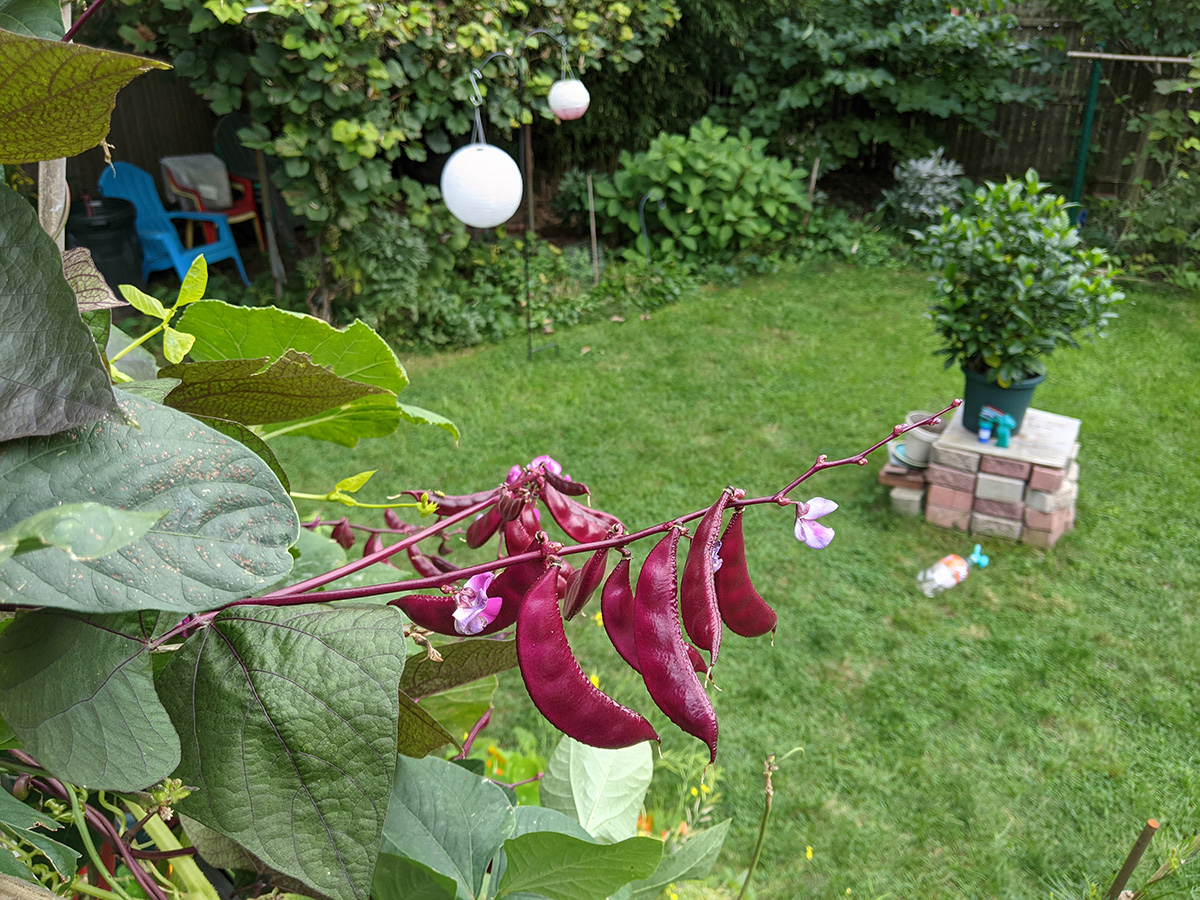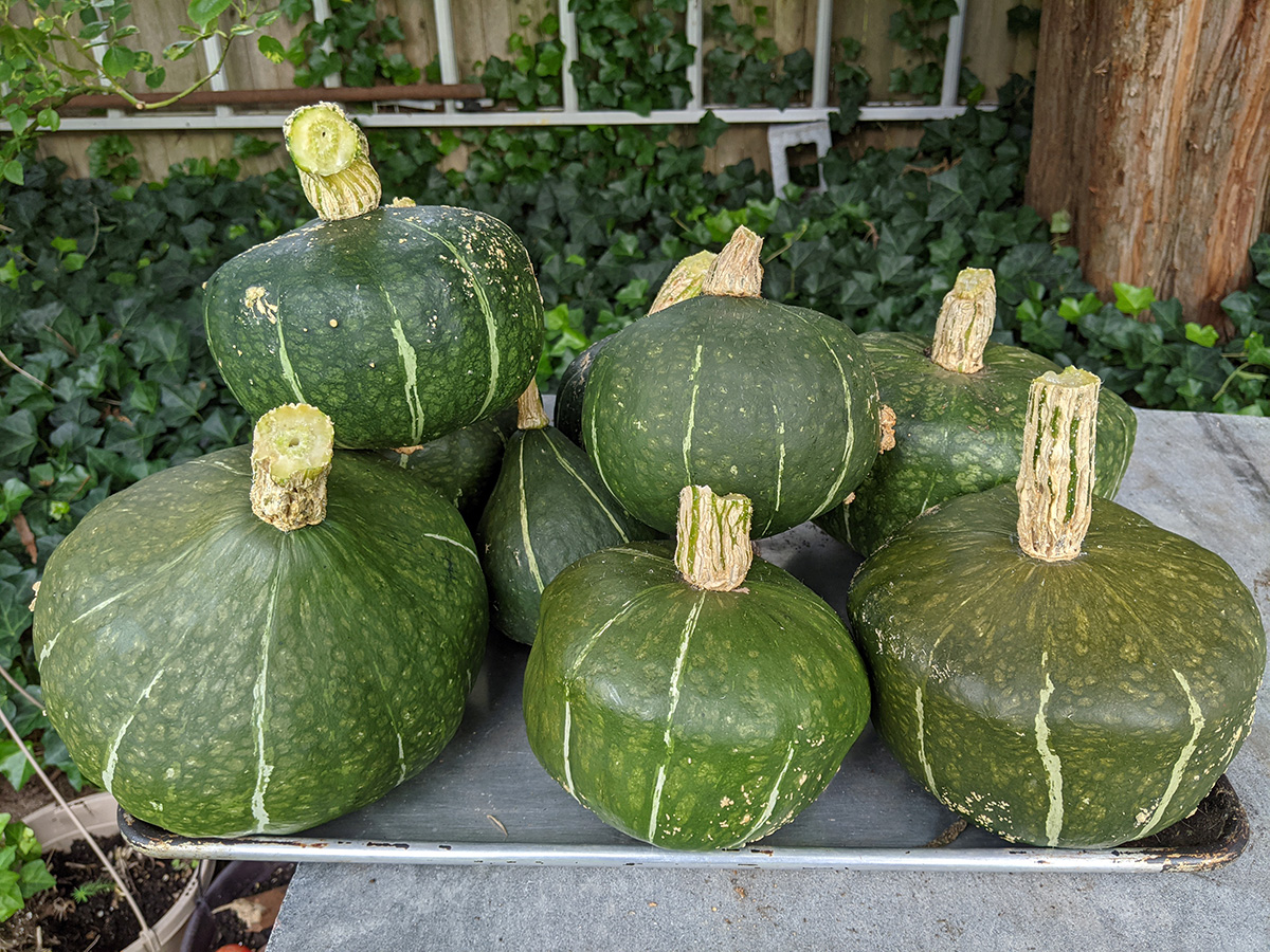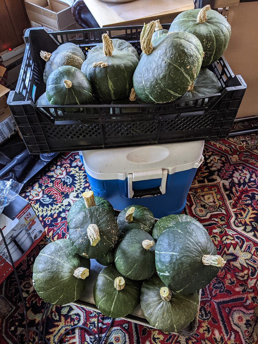 we also harvested the last of our buttercup squashes. this allowed my father to later take down all the squash vines to clear up the trellis and make the hyacinth beans and long beans more visible.