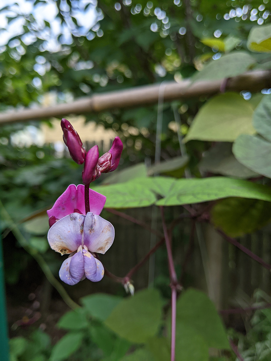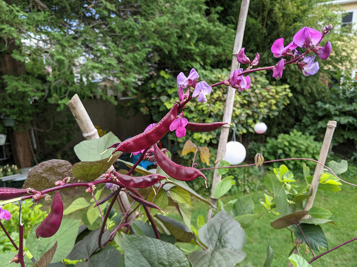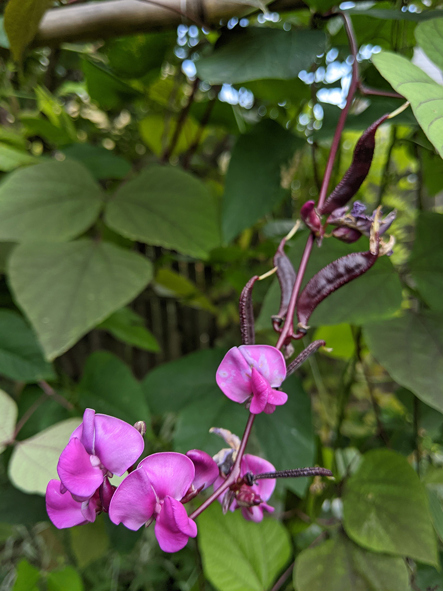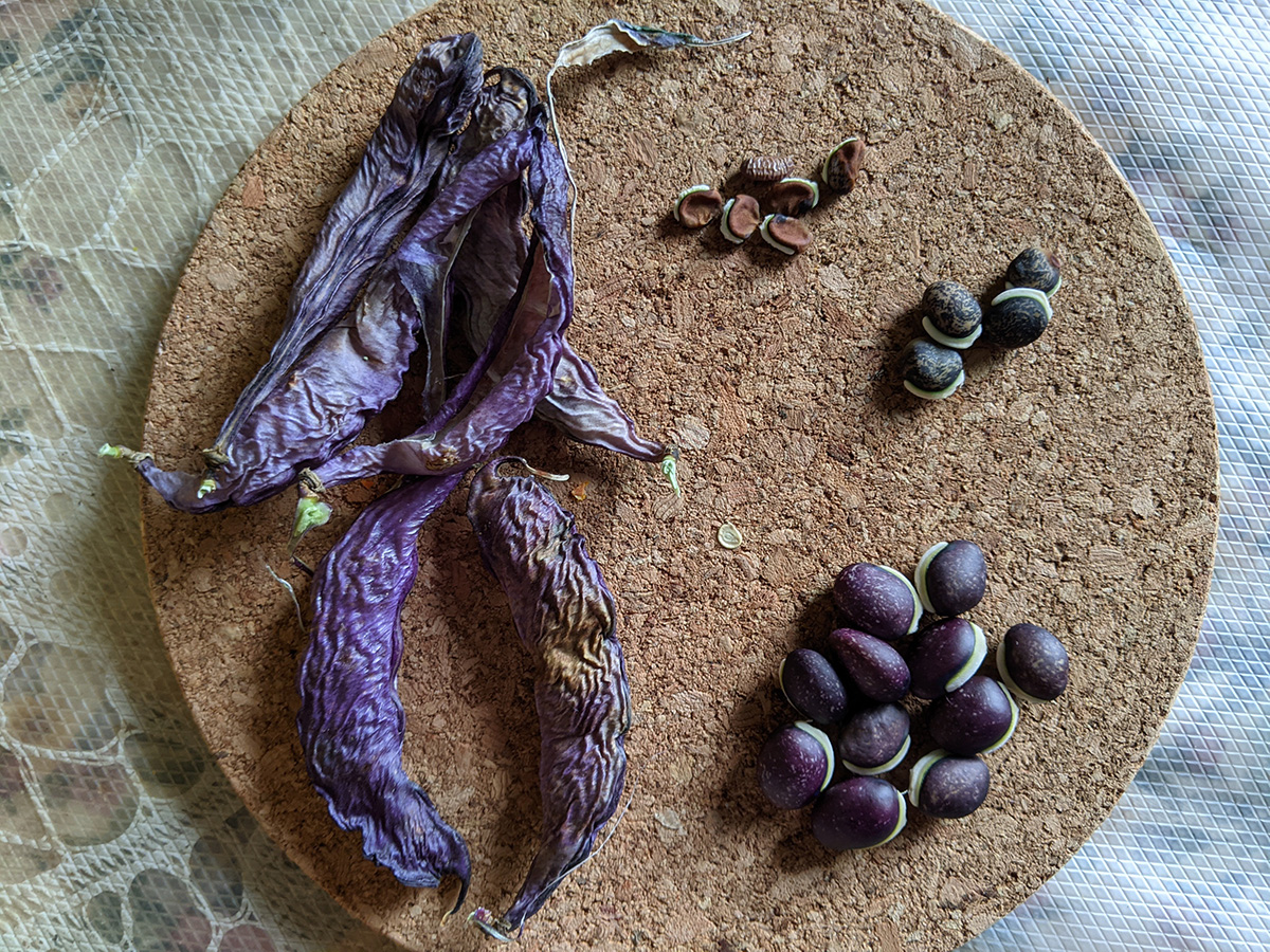 hyacinth bean seeds are supposed to be black and white, but this season we've had some brown ones (though they might be immature seeds, unable to germinate) and large purple ones. my father said the purple seeds will shrink and turn black.
