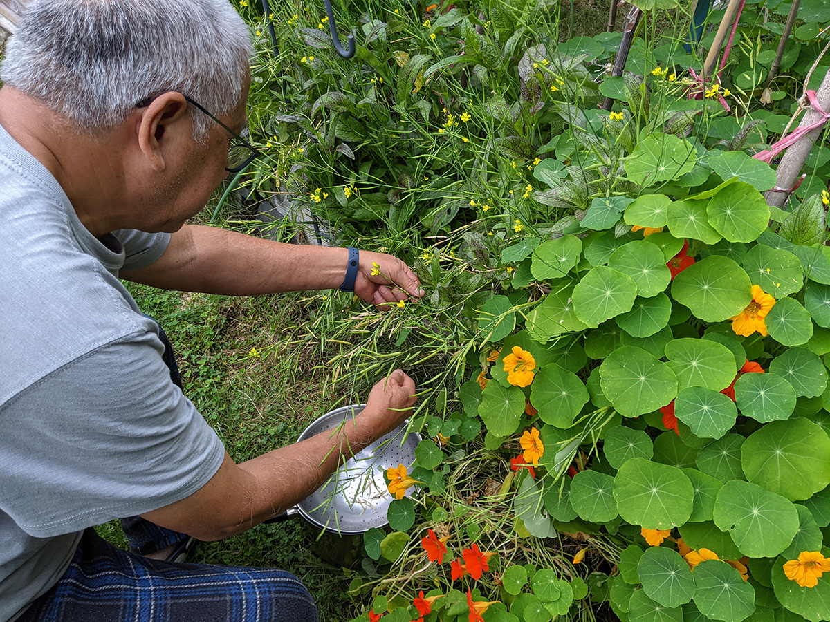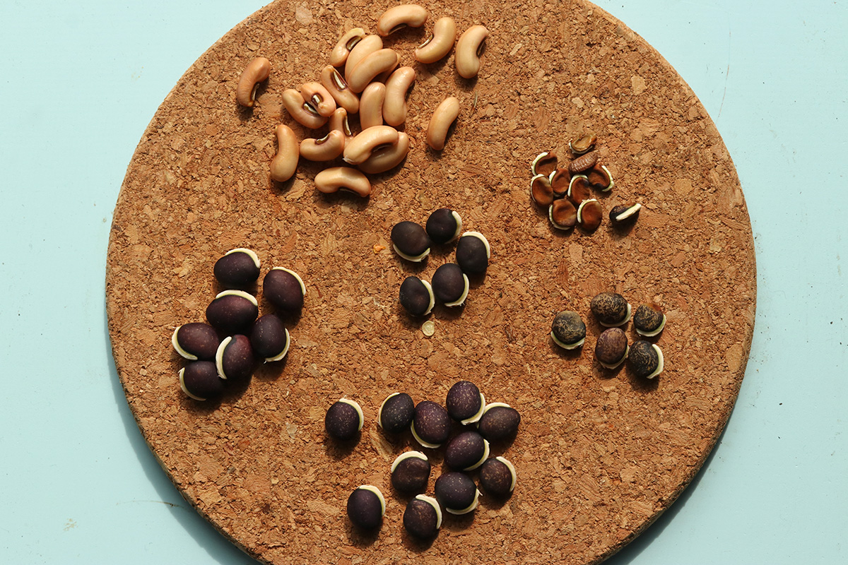 we have way more long bean seeds than we know what to do with. it's not like we planned it, just that they're easy to miss until they fully ripen, by that point the beans are inedible. they also produce a lot of bean seeds, give how long a single bean can grow. we also have a bunch of hyacinth beans in various stages of drying. when they're fresh they're very plump, almost like a raisinet, we speckled patterns on the outer shell, but eventually they'll shrink in size and lose their patterning. my father also harvested some more mustard seeds; not enough to make mustard paste, but enough to grow for next season.
