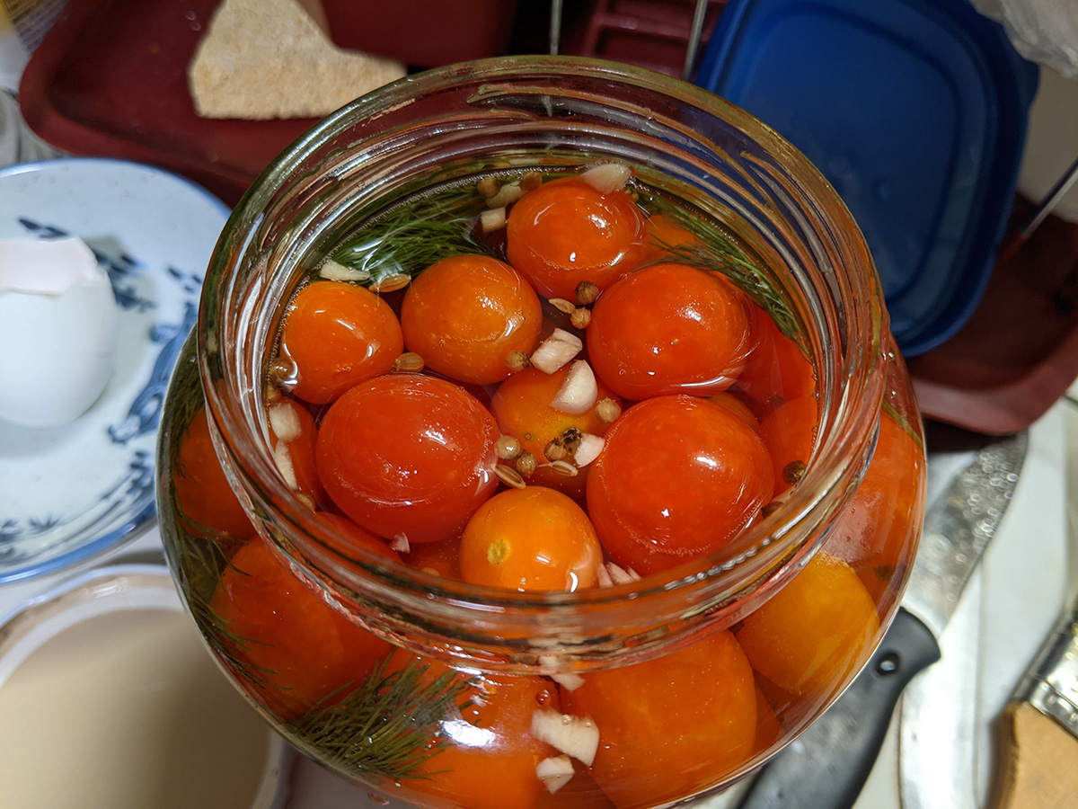 i stayed indoors the rest of the afternoon, only going out to pick some leftover long beans with my mother. we took out a batch that'd been fermenting a long time; i've lost track when it first went into the short 1/2 gallon jar, but it may very well be a batch from august 29th, so more than a month ago; but we then filled the jar with fresh long beans.
