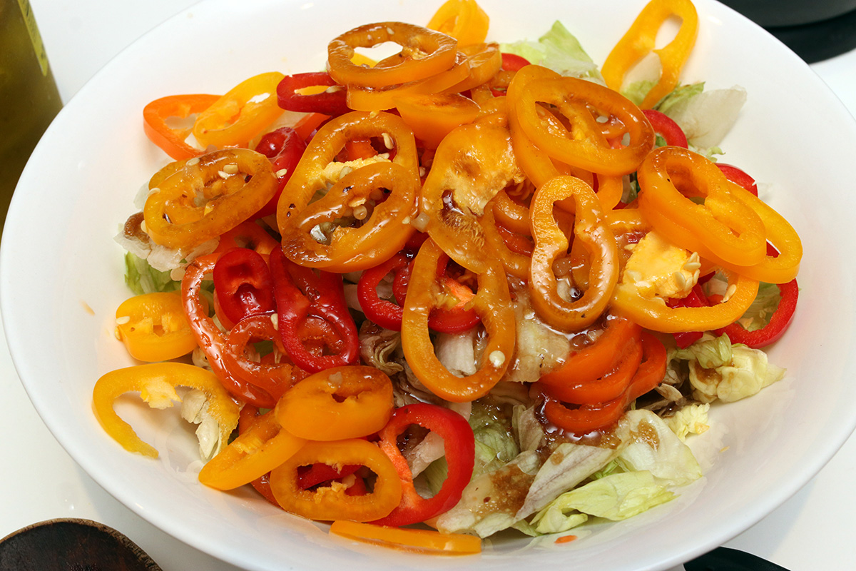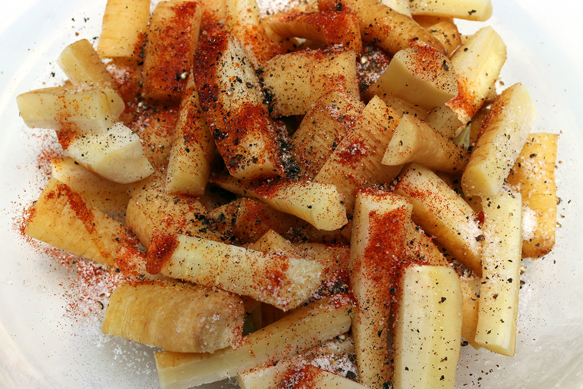 for dinner i made a simple salad with chopped sweet peppers and a mix of italian and balsamic vinegar dressing as an appetizer while i waited for the main course of roasted parsnips. i followed my recipe from back in july (oven set to 450°, something i forgot to mention). eating parsnips the second time around, i didn't find them as delicious once the novelty wore off. they're maybe a little too sweet for my taste, given the choice, it's a lot easier and cheaper to just use regular russet potatoes if i'm making baked fries.