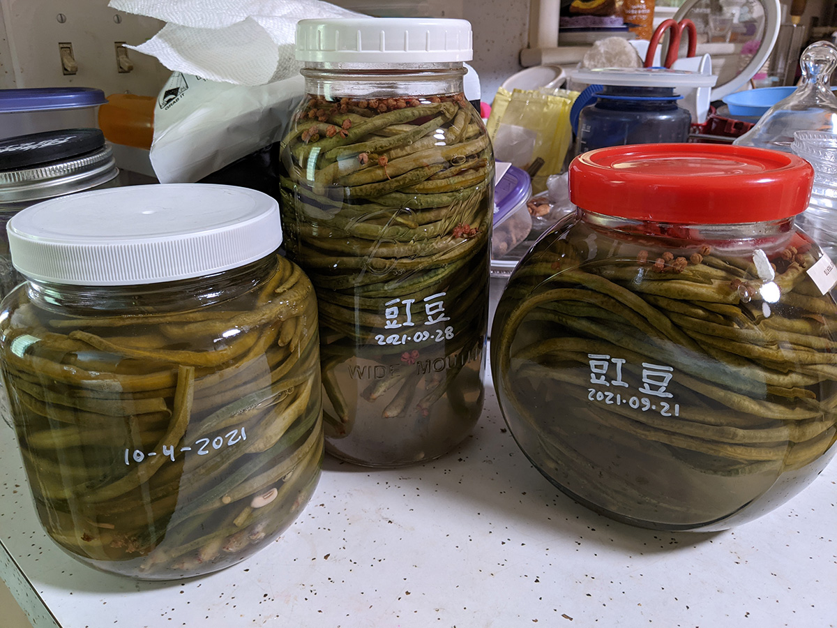 for dinner my mother cooked up some hyacinth beans. i've been waging a battle for weeks now, asking her not to pick the beans so we can have some seeds to grow for next season, but she thinks we have plenty of seeds as it is. i do have two hyacinth beans in my own community garden which i haven't visited in weeks. i can harvest the seeds from those. the problem is once the weather turns cold and we have a killing frost, all those beans will die, and i don't know if we can get any viable seeds after that. my mother also cooked up some salted mackerels. they tasted pretty good, but i think they'd be even better if cooked outside on the griddle.