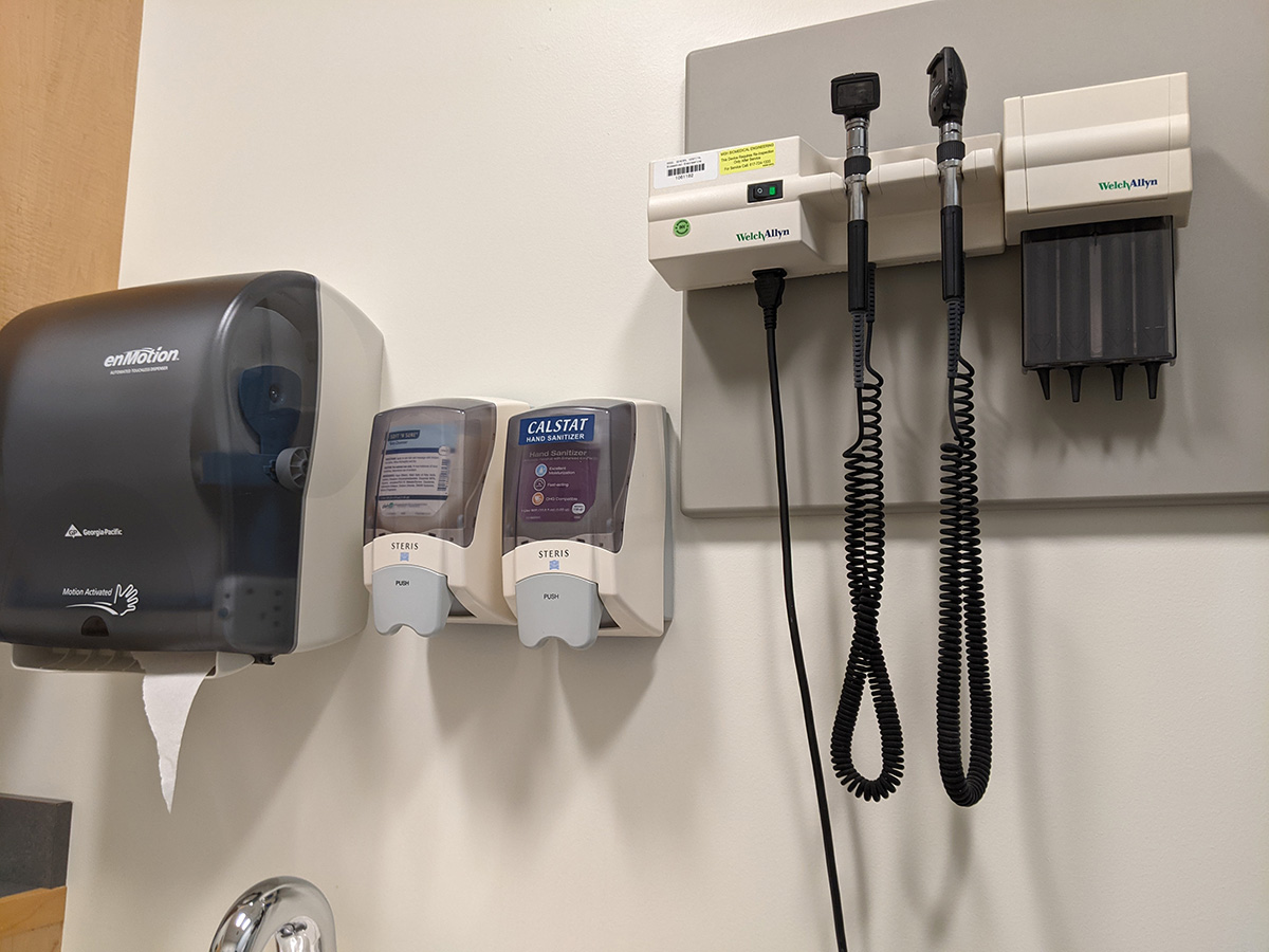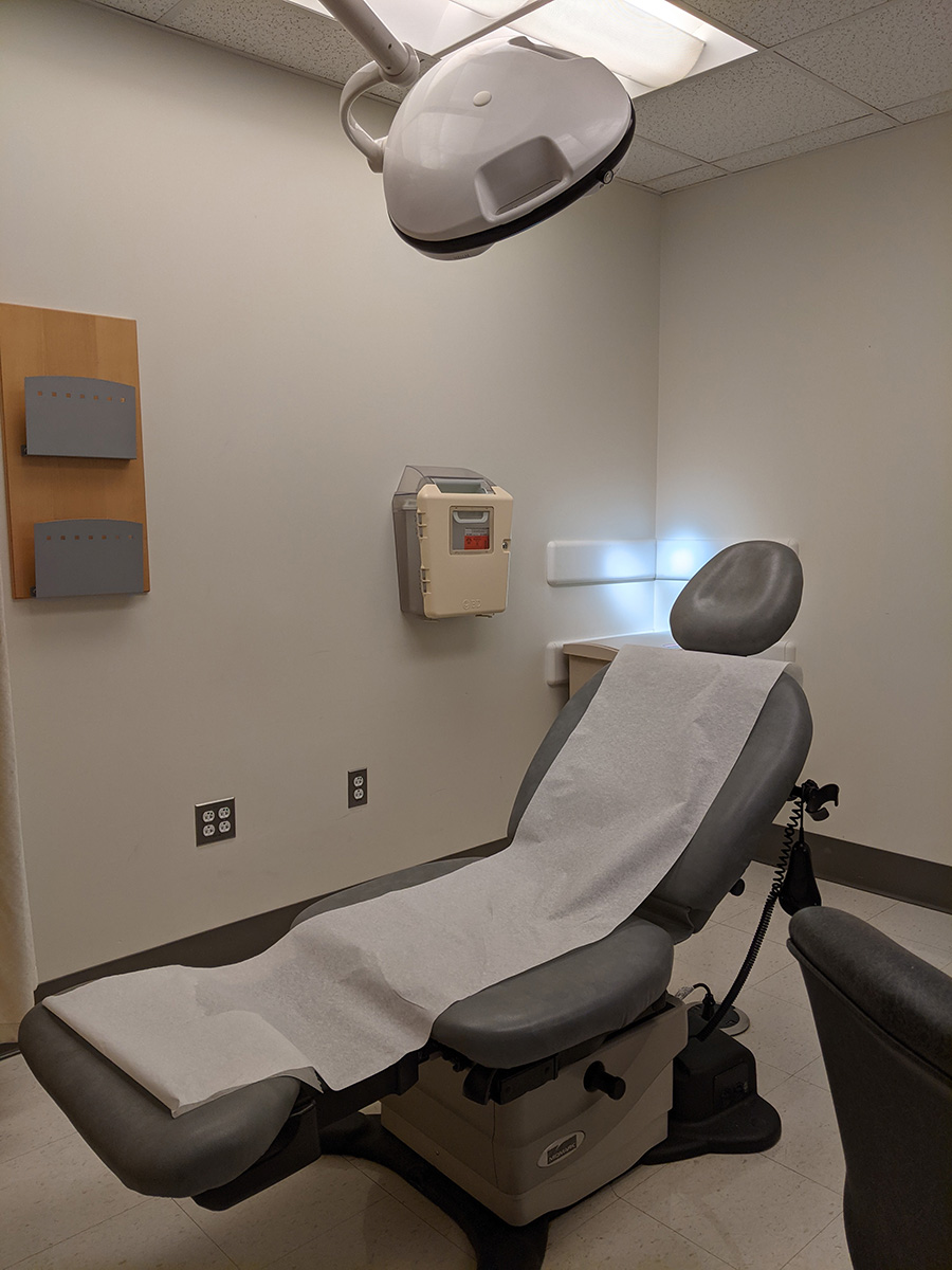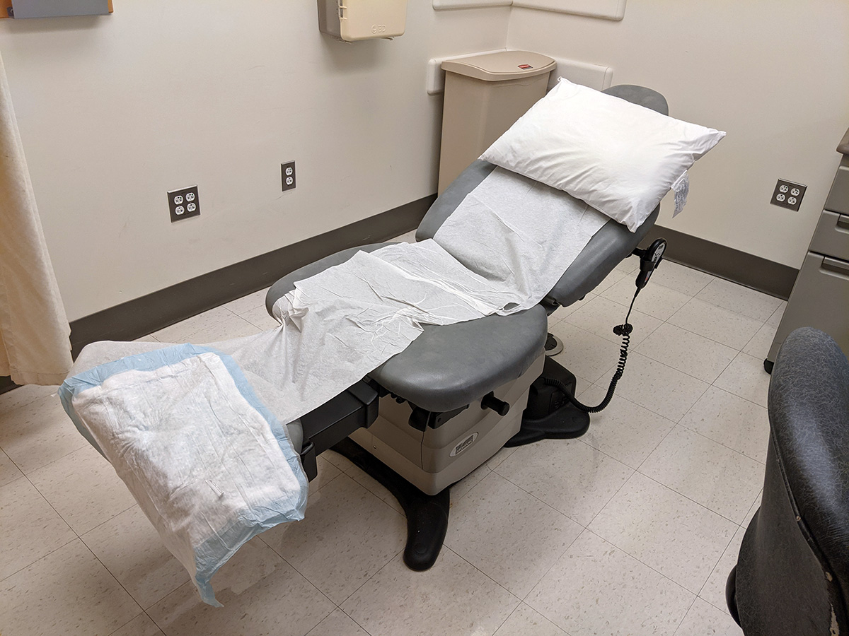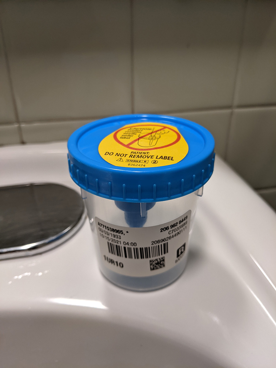 minutes later the nurse came back with the equipment and sample cup. there was a syringe full of lidocaine, a scalpel, bandaid, gauze, vaseline, and something that looked like a cauterizing device. she placed all the equipment on a wheeled table. she then took some photos of the toe with a scale indicator sticker. she warned me that the lidocaine injection would hurt, which got me a little worried. she left the room, told me to sit back on the examining bed and relax.