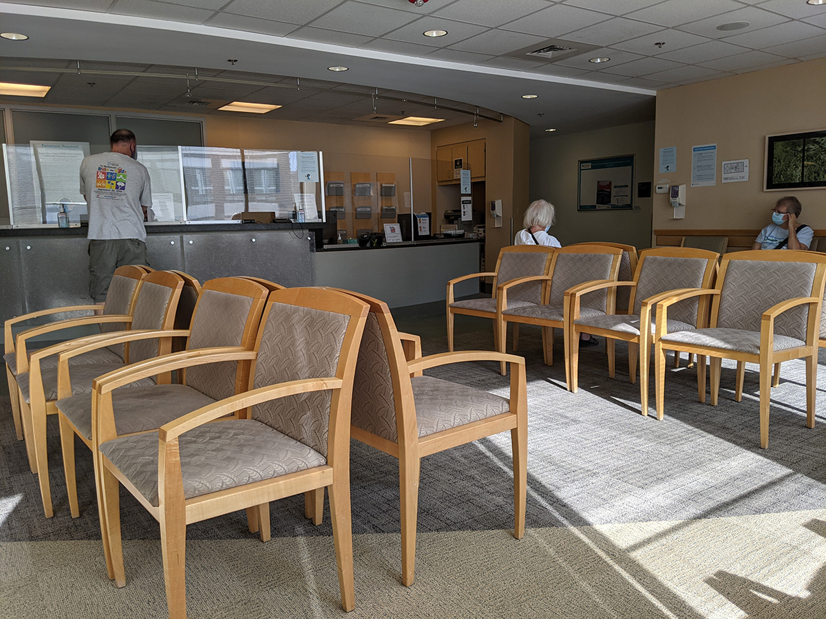 just like at the previous place, i had to disinfect my hands first before grabbing a new facemask. i then checked in one of the attendants sitting behind a plastic window partition. after a few minutes of waiting, someone came out and called my name.