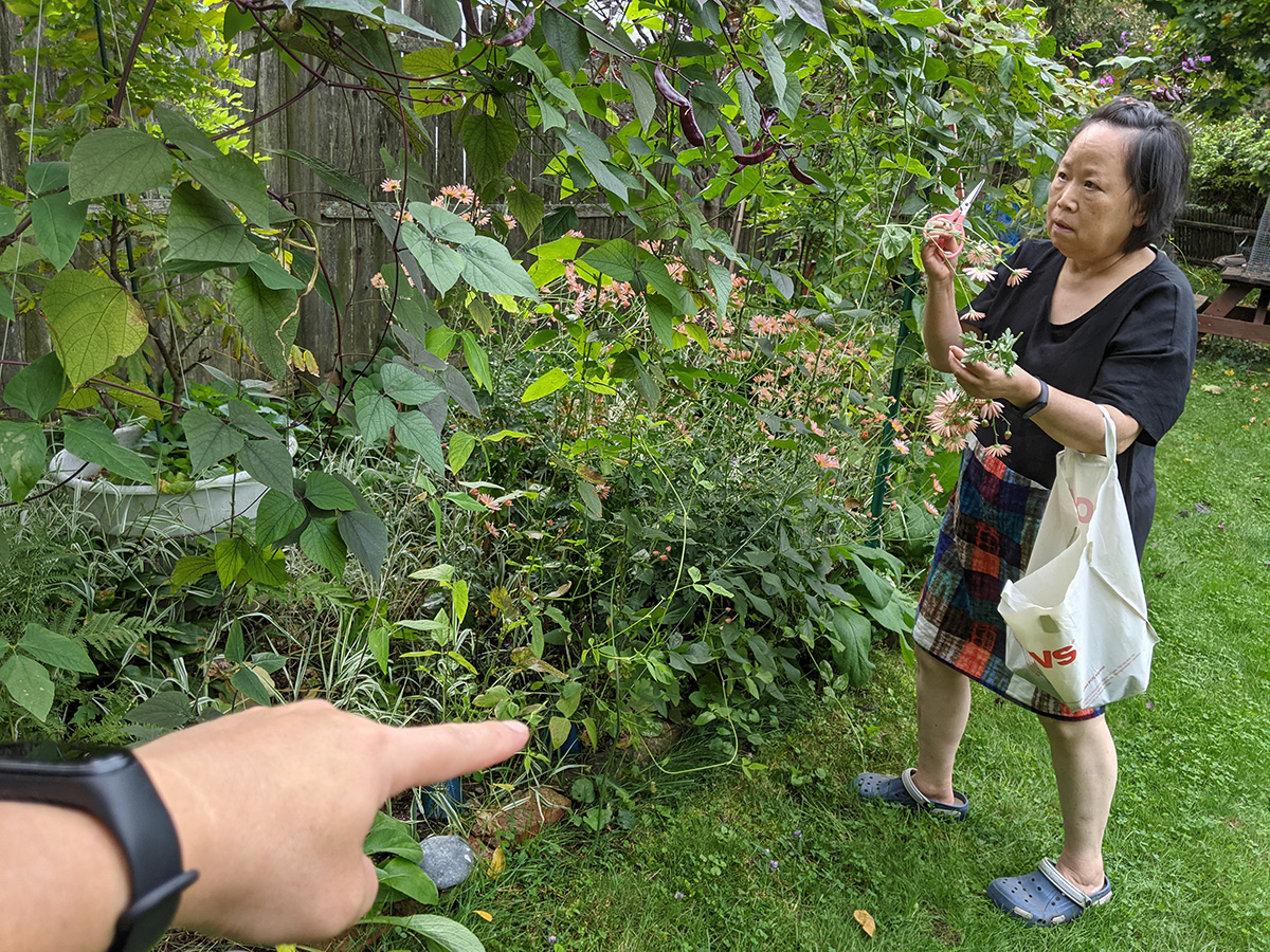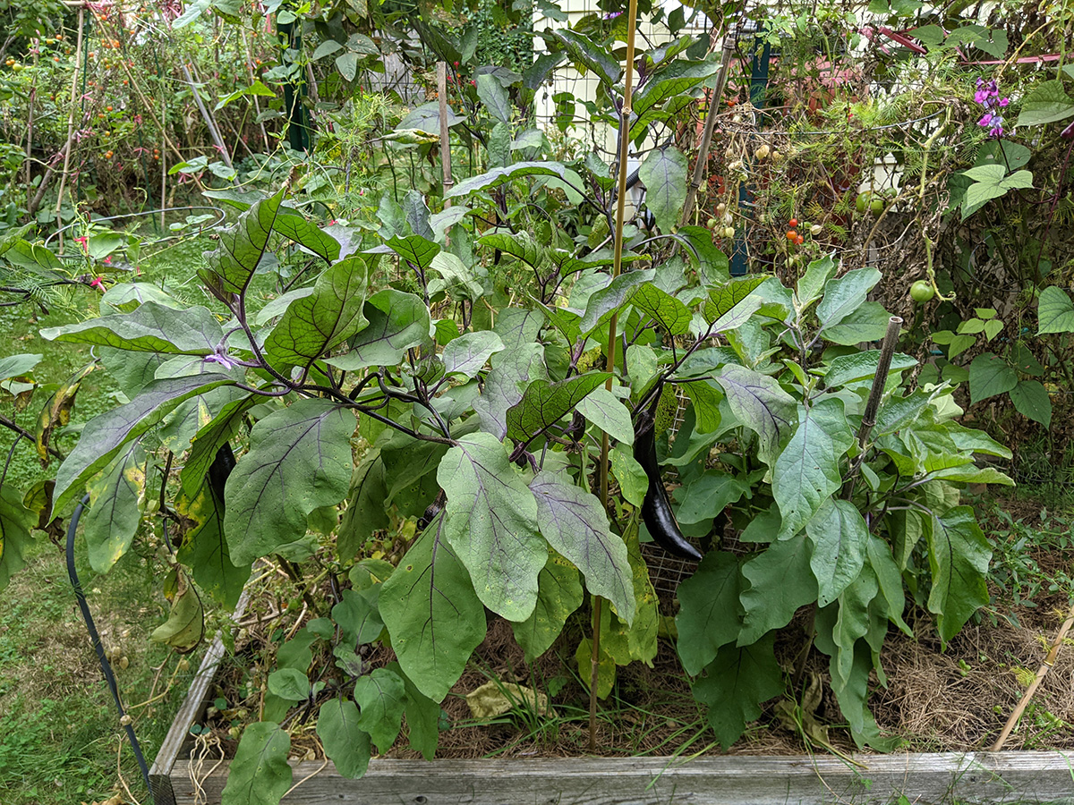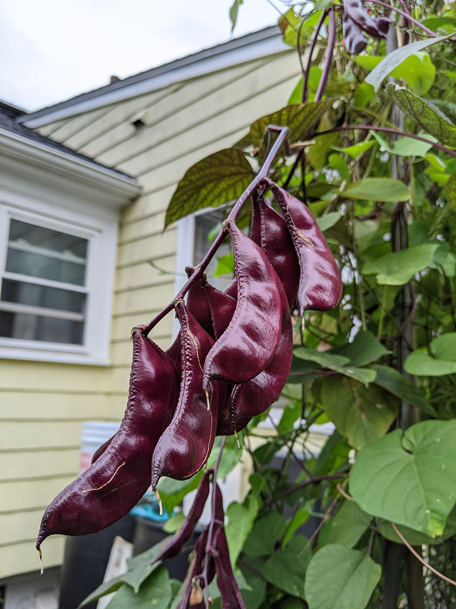 later my mother went out into the backyard to harvest hyacinth beans to eat. we currently have barely 2 dozen hyacinth bean seeds. if my mother continues to take all the bean pods, we won't have anymore mature seeds to plant for next year before the arrival of frost that will kill all the plants. she also harvested a bunch of japanese eggplants, the last of them even though the plants still look very healthy. not enough sunlight and not enough warm to allow them to continue producing eggplants. back inside the house, my parents had collected some more long beans. my father was also drying some ginkgo nuts he found near the cafe. even though he cleaned them, they still smell like cat poop.
