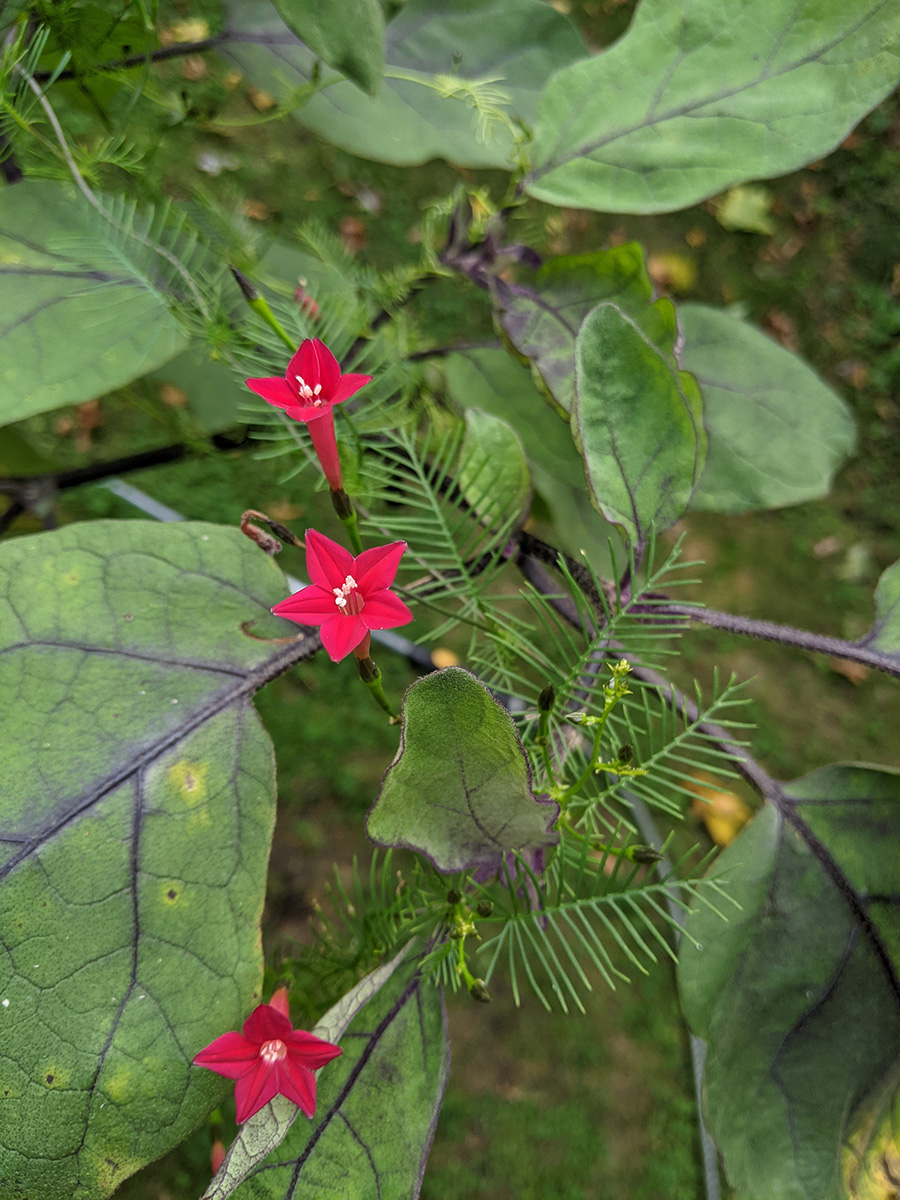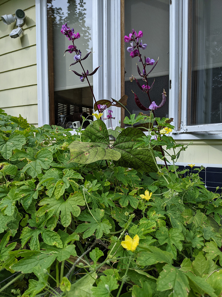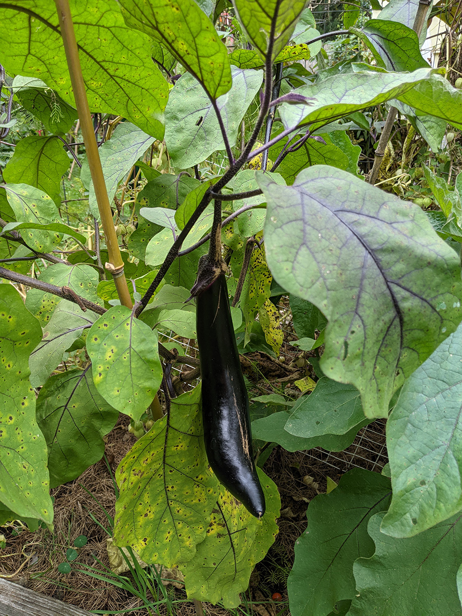 later my mother went out into the backyard to harvest hyacinth beans to eat. we currently have barely 2 dozen hyacinth bean seeds. if my mother continues to take all the bean pods, we won't have anymore mature seeds to plant for next year before the arrival of frost that will kill all the plants. she also harvested a bunch of japanese eggplants, the last of them even though the plants still look very healthy. not enough sunlight and not enough warm to allow them to continue producing eggplants. back inside the house, my parents had collected some more long beans. my father was also drying some ginkgo nuts he found near the cafe. even though he cleaned them, they still smell like cat poop.