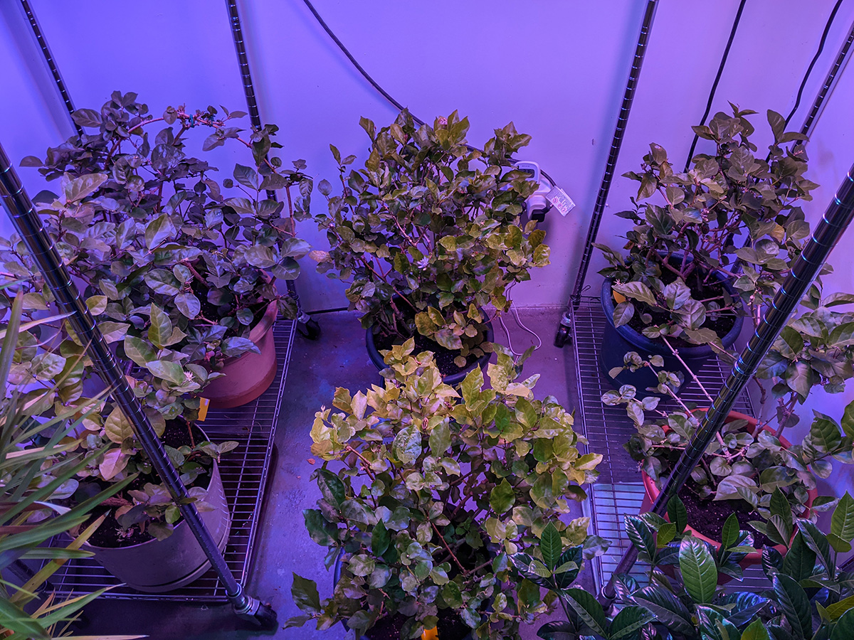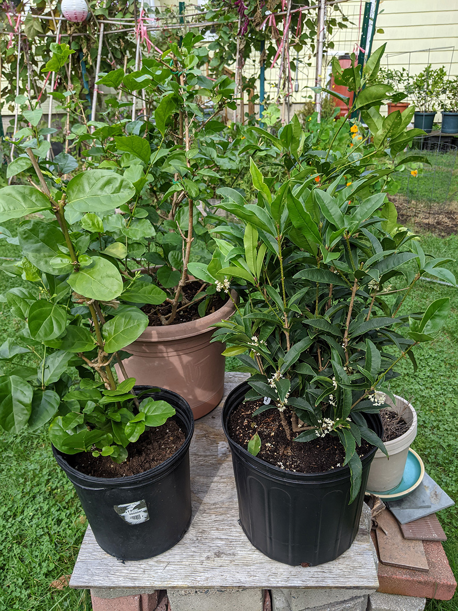 first the small potted plants, followed by the larger 3 gallon potted jasmines. the 3 gallon gardenia had already been in the basement since last weekend. it's a lot bigger than last year, we didn't trim it enough after it stopped blooming, and now it's too late, as buds will only grow on new shoots. all 6 3 gallon jasmines were at the far end of the grow room which gets the most light: 2 led grow lights plus a 4ft led shop light. the arabian jasmines were on the wire racks while the two belle of india jasmines were on the floor in the middle. that's actually the best spot because it gets light from both grow lights and shop light. we might not need the shop light, if we want to save some electricity.