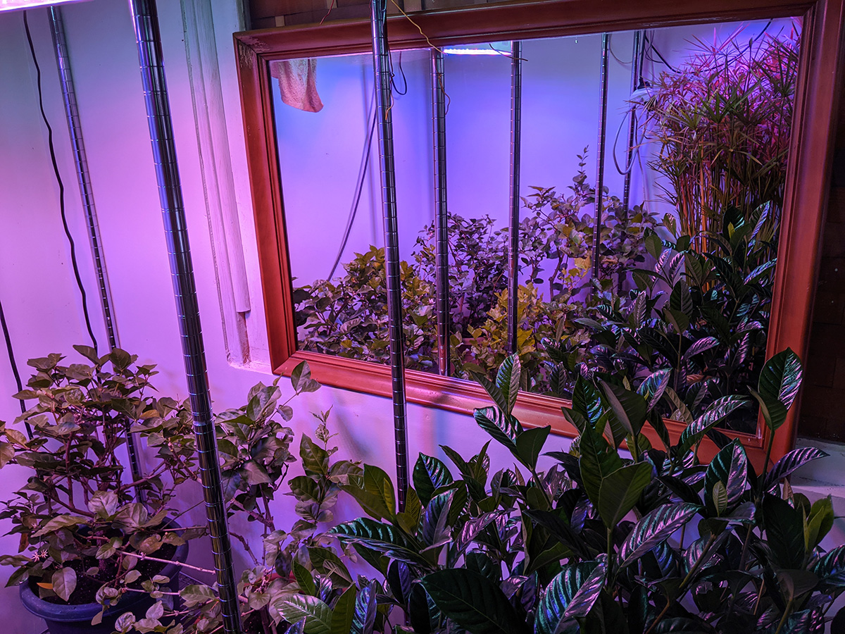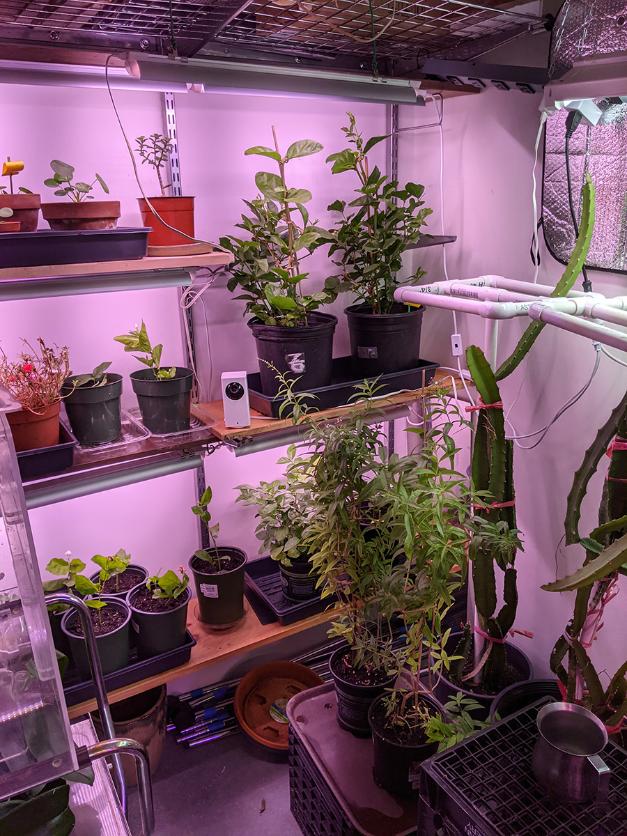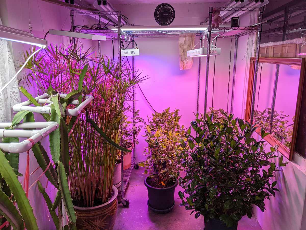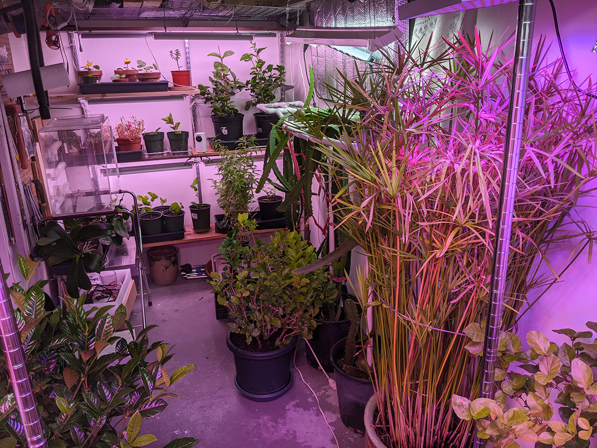 the biggest deciding factor to move all the houseplants into the basement was that the temperature was finally turning cold, and we'd start seeing some night temperatures in the 40's, something we haven't experienced yet this fall. last year we'd already moved the cactuses and water reed into the basement by this time, but still kept the gardenia and jasmines outside, moving them into the sunroom when it got too cold. that seems too much work and delaying the inevitable. we had the grow room already set up anyway, might as well move everything in, kick off the start of our indoor wintering growing season.