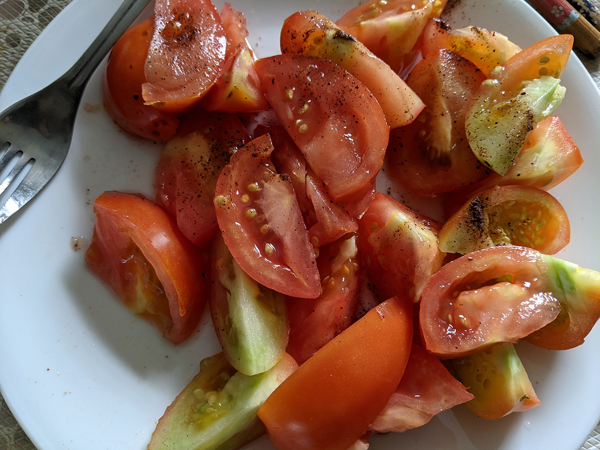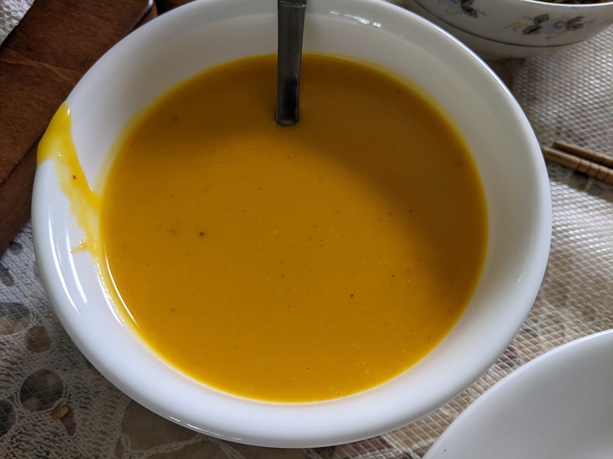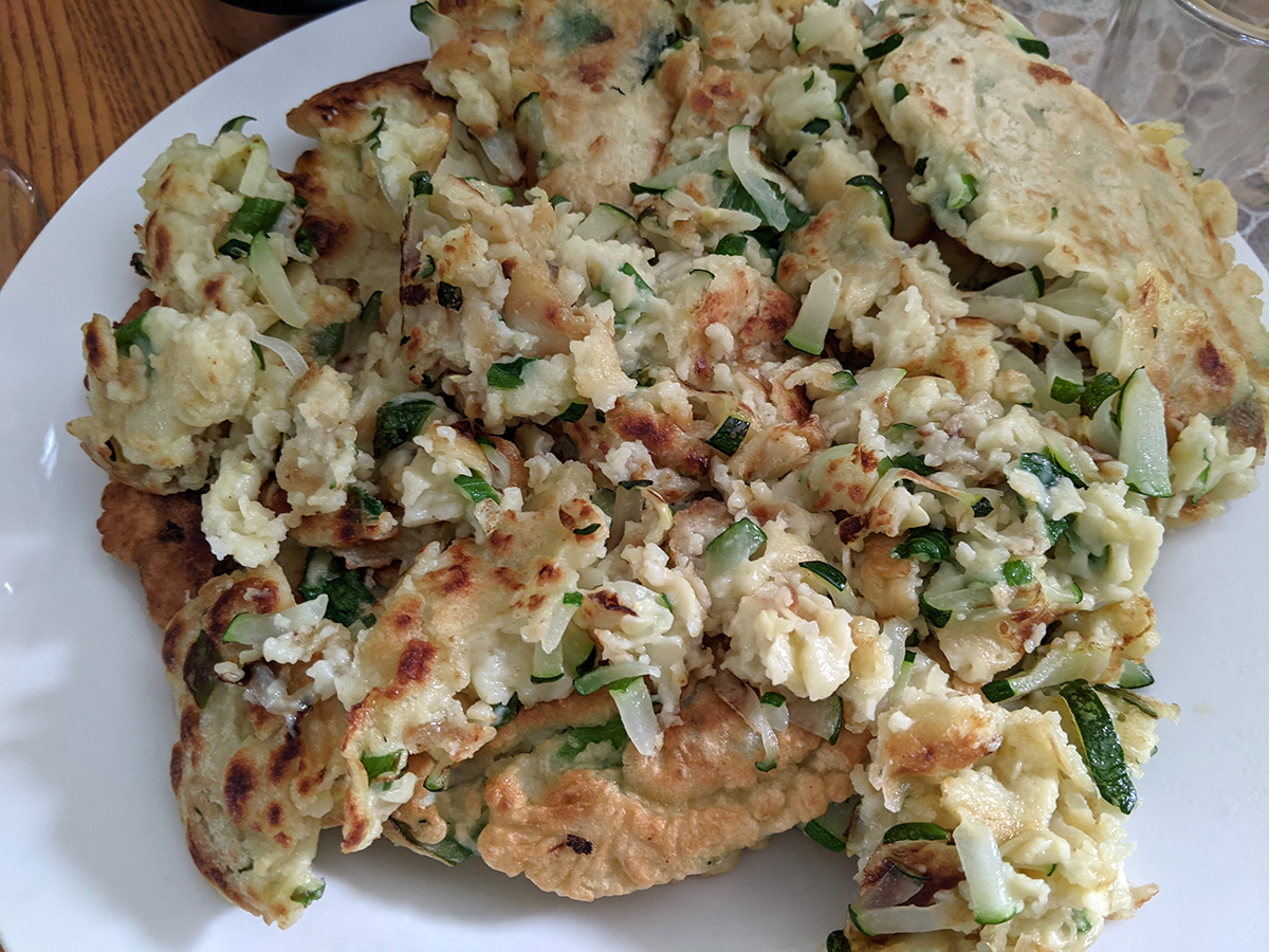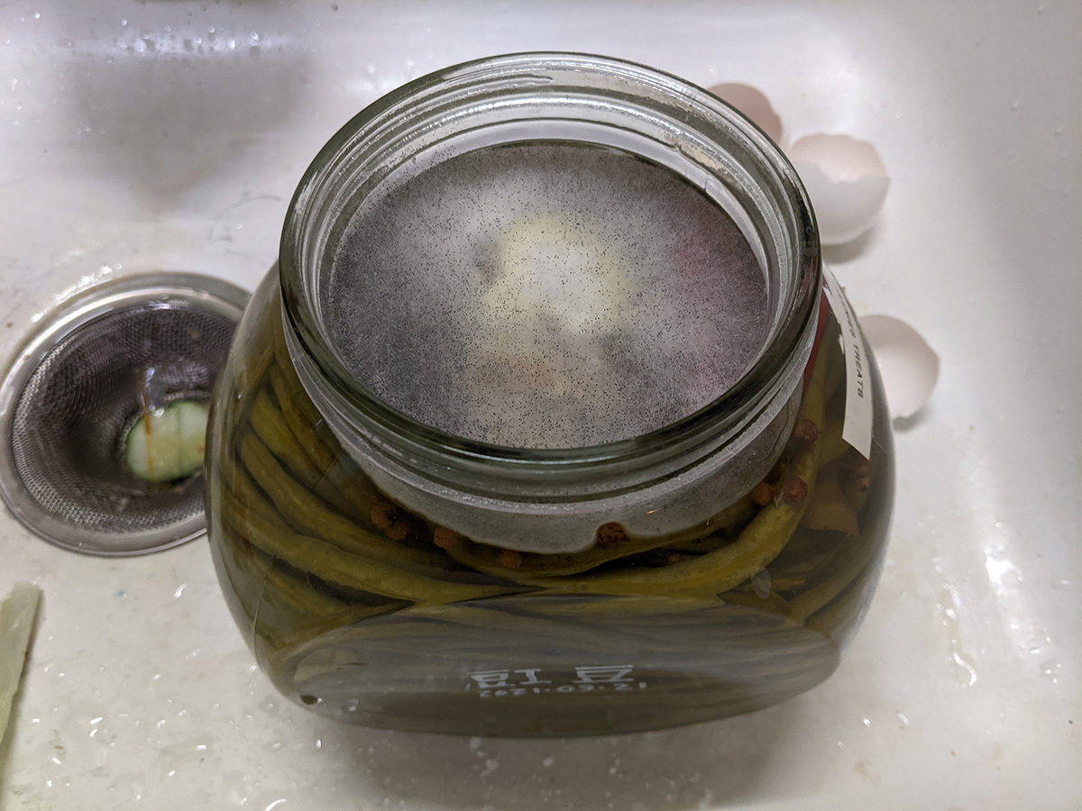 for lunch my mother made some zucchini egg omelette. i also had some cold squash soup that my parents made with the vitamix. they also added some hot peppers to flavor but it made it too spicy and it was like drinking hot curry sauce instead of soup. one of the jars of fermenting long beans continue to grow mold on the surface. fortunately it seemed to be growing on top of a scoby, and all i had to do was remove the scoby along with the mold. but it's better to eat those long beans.