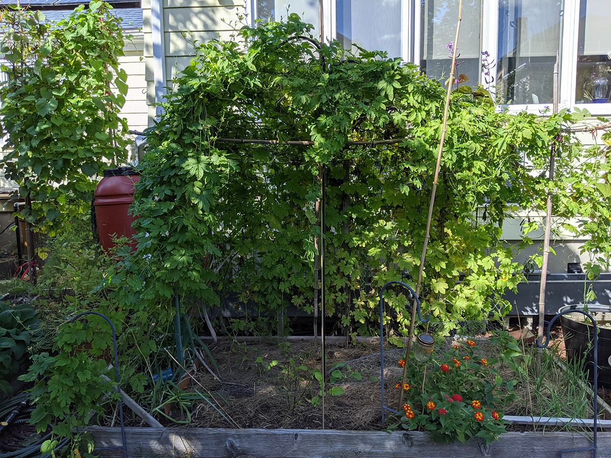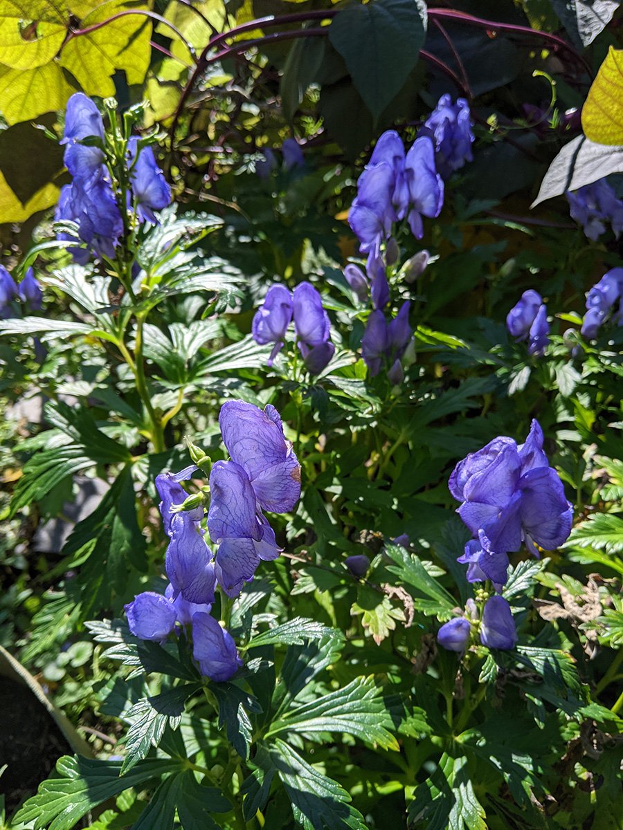 this morning i swept the sidewalk of locust leaves, brushing them onto the street as street cleaning tomorrow will clean everything up. after that i went back to the community garden. i snipped off a bunch of thai basil that i forgot to take with my yesterday. when i found them today they were already shriveled, but i'm hoping a soak in some water might reconstitute them.