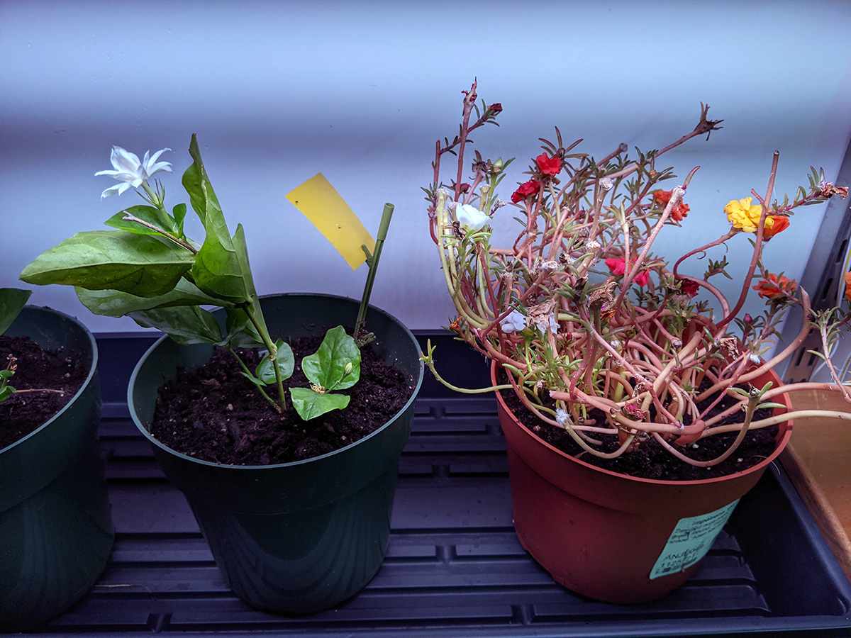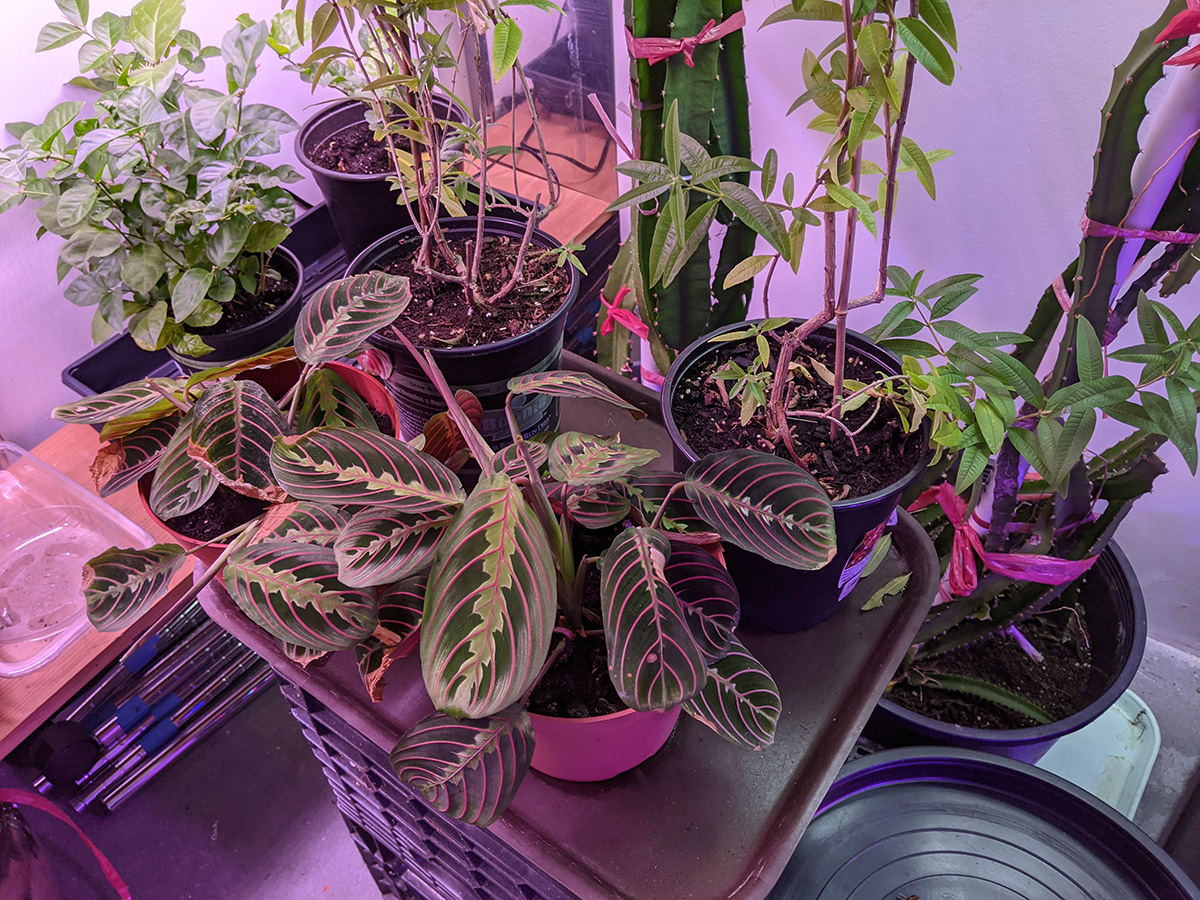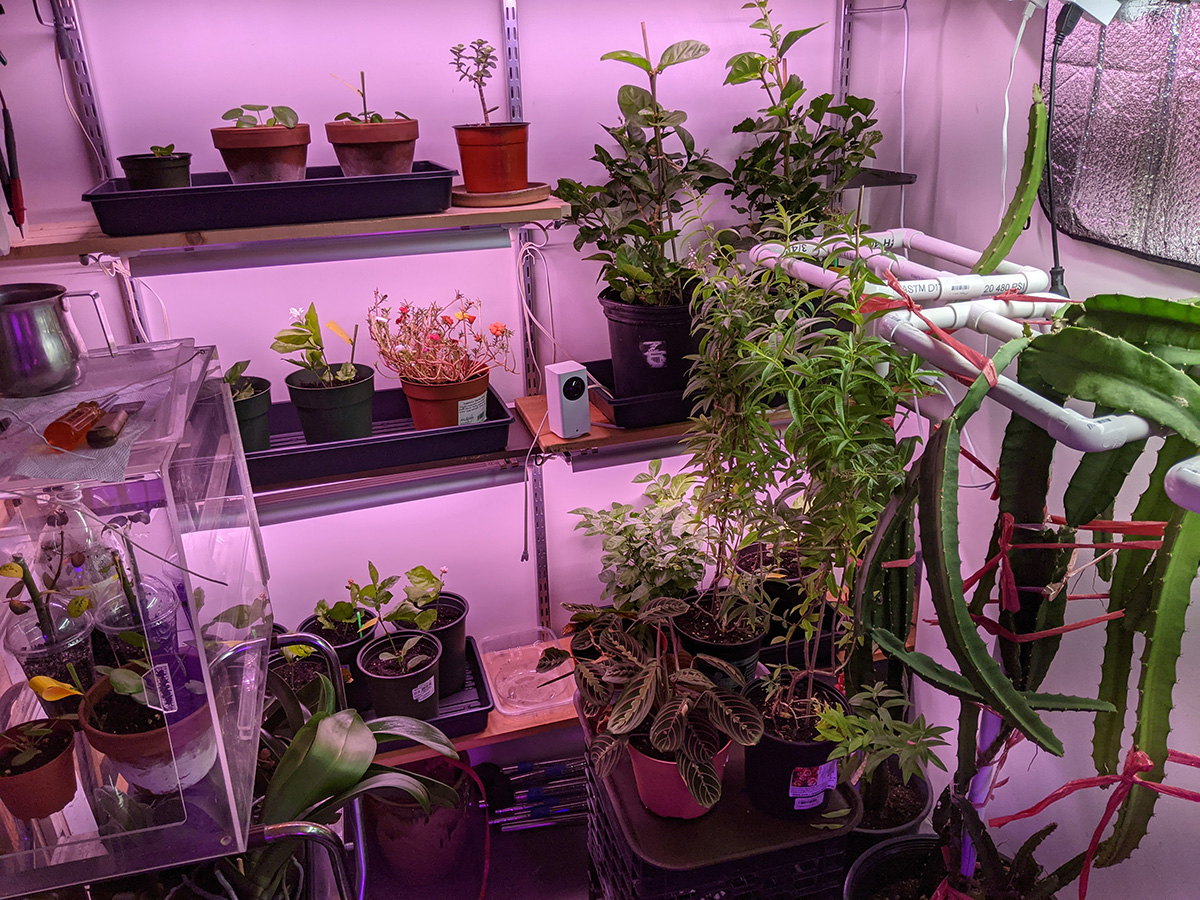 i cleaned up the wire shelves next to the basement sink to make room for all the plant related supplies from both the grow room and the sun room. the adjustable wall shelves in the grow room used to be the home for most of these items but now that we've converted them into grow shelves, the supplies needed a new home. i vacuumed the sunroom, the grow room, and the basement. my father also reconnected the deep cycle marine battery back to our on-demand backyard water pump.